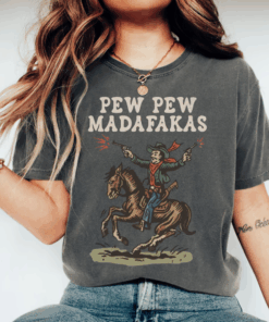 Retro Cowboy Shirt, Pew Pew Madafakas Tshirt, Funny Western Gift, Vintage Cowboy Graphic Tee, Vintage Rodeo T-Shirt