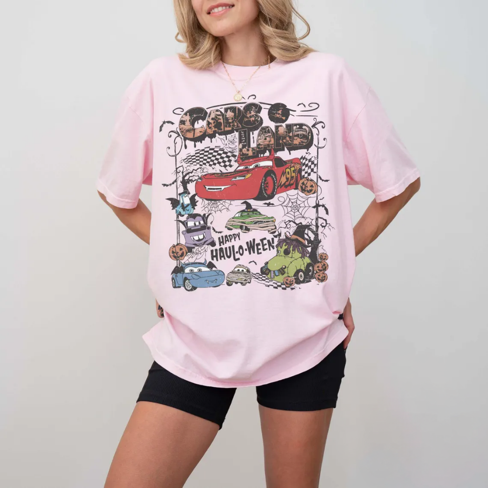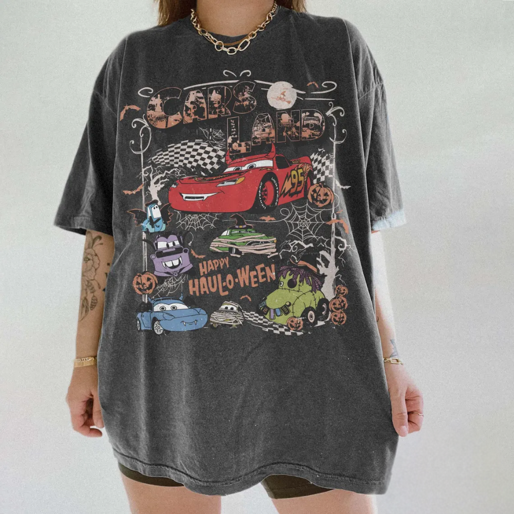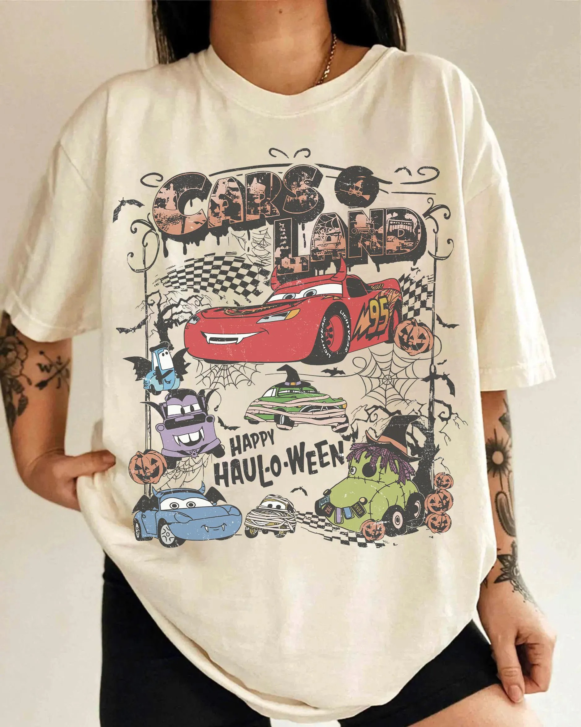 Retro Disney Cars Land Halloween Shirt, Lightning McQueen Happy Haul-O-Ween Tee, Spooky Vibes T-Shirt, Disneyland Halloween Party 2025 Top