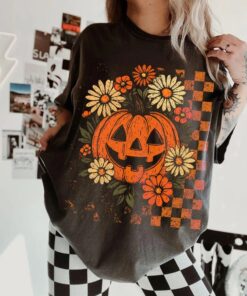 Retro Floral Pumpkin T-Shirt, Funny Pumpkin Halloween Shirt, Preppy Halloween Tee, Halloween Pumpkin Top, Spooky Season
