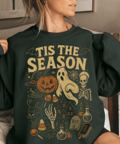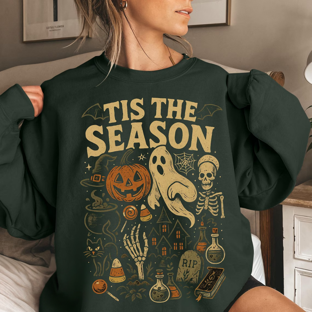 Retro Halloween Sweatshirt, Tis’ the Season, Vintage Halloween Aesthetic, Women’s Halloween Shirt, Pumpkin Ghost Oversized Sweater