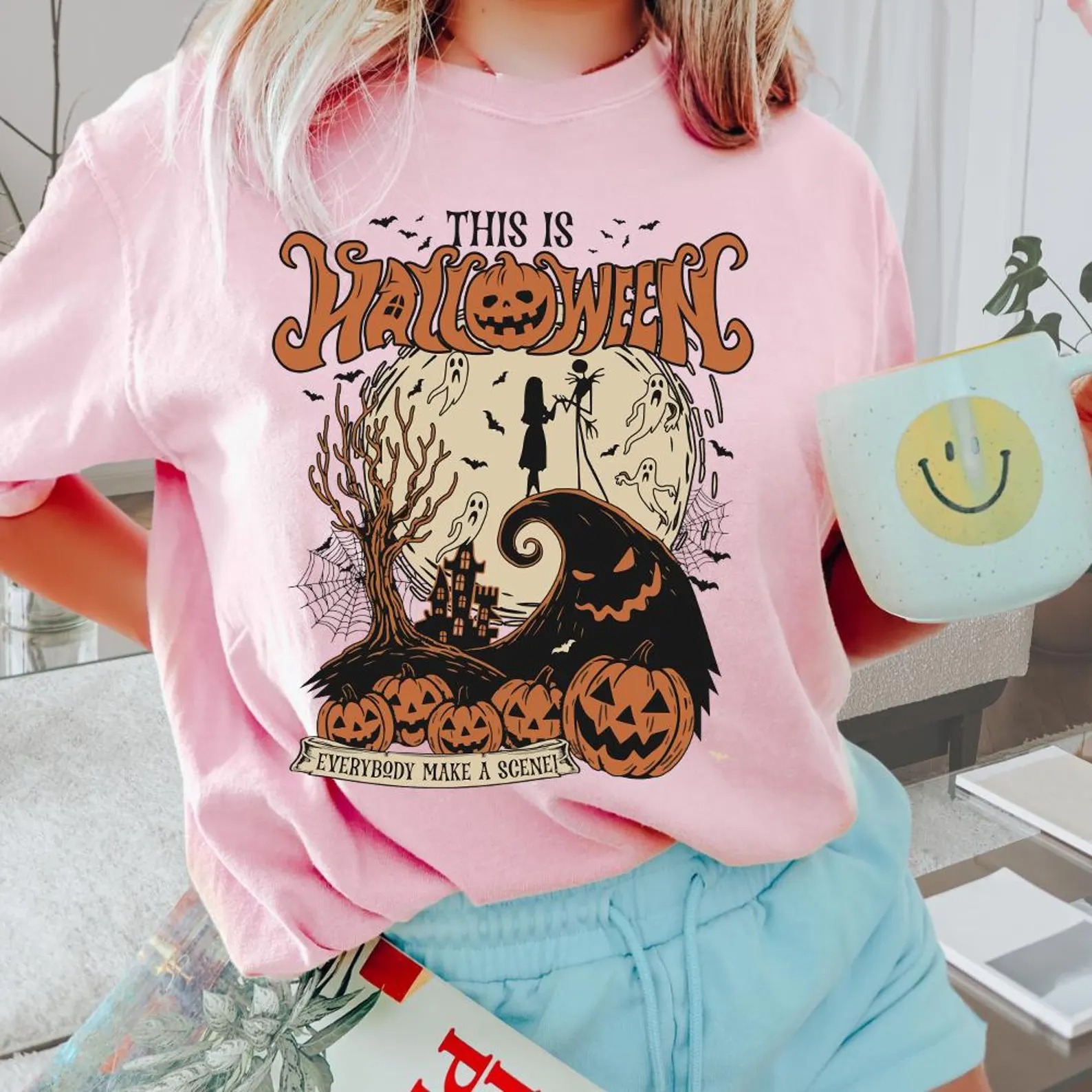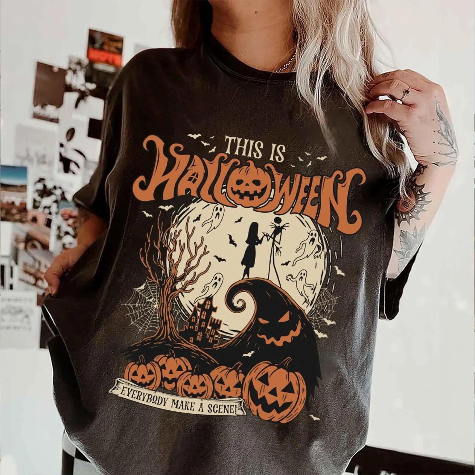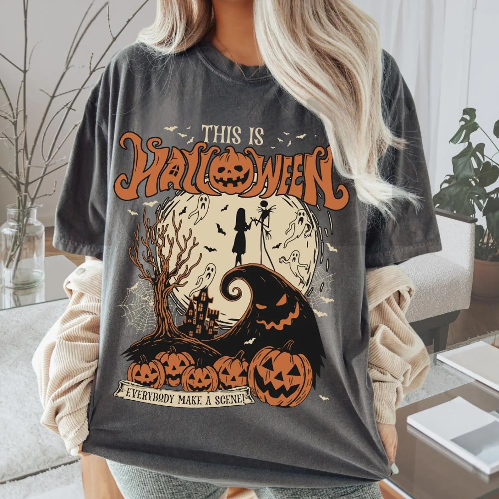 Retro Halloween The Nightmare Before Christmas Shirt, This is Halloween Everybody make a scene Tshirt, Jack and Sally Halloween Top