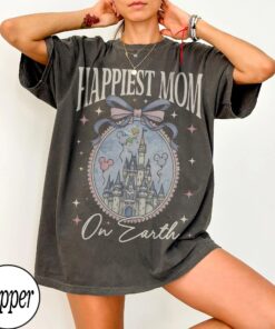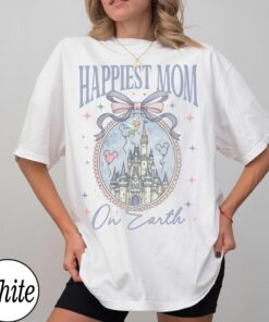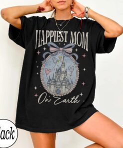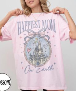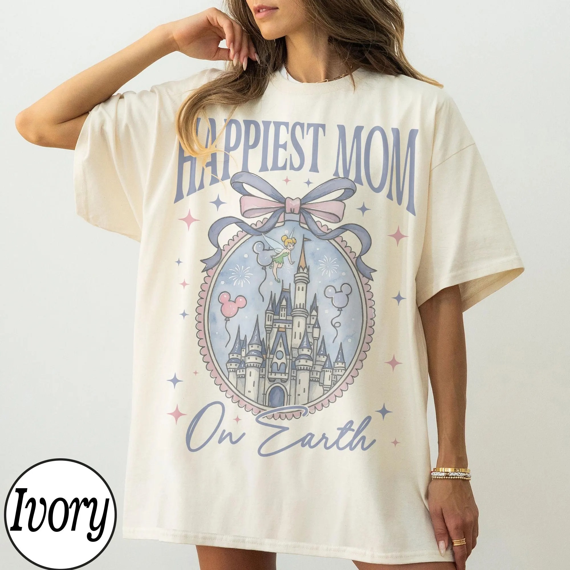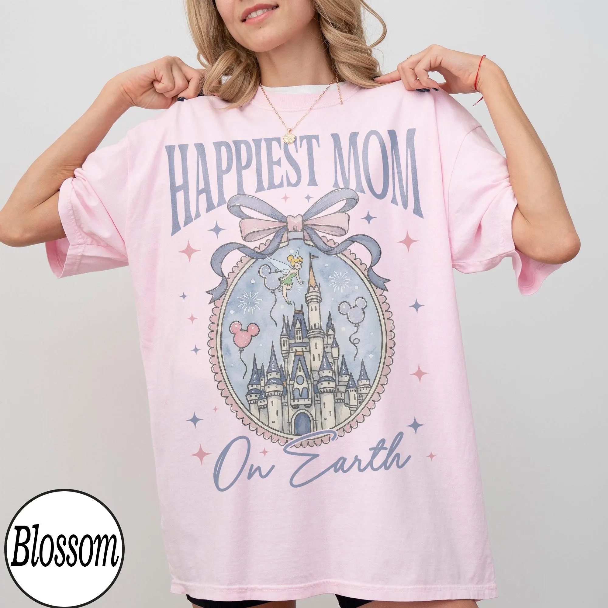 Retro Happiest Mom On Earth Shirt, Disney Castle Tee, Coquette Bow Mom T-Shirt, Disney Castle Coquette Bow Top, Mother’s Day Gift For Mom