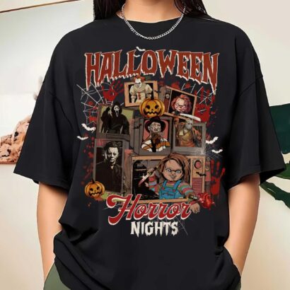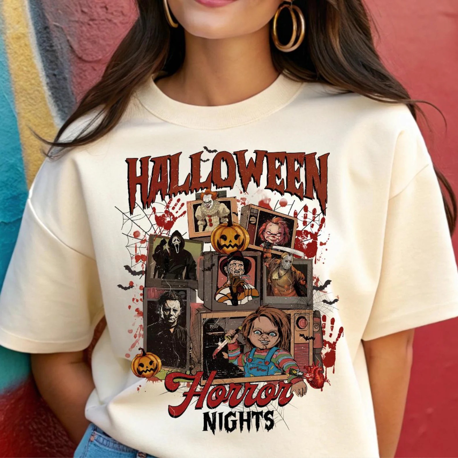 Retro Horror Characters Friends Tshirt, Scary Horror Movies Shirt, Horror Characters Costume, Halloween Horror Nights Tee