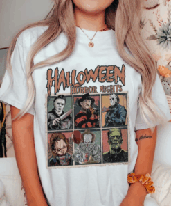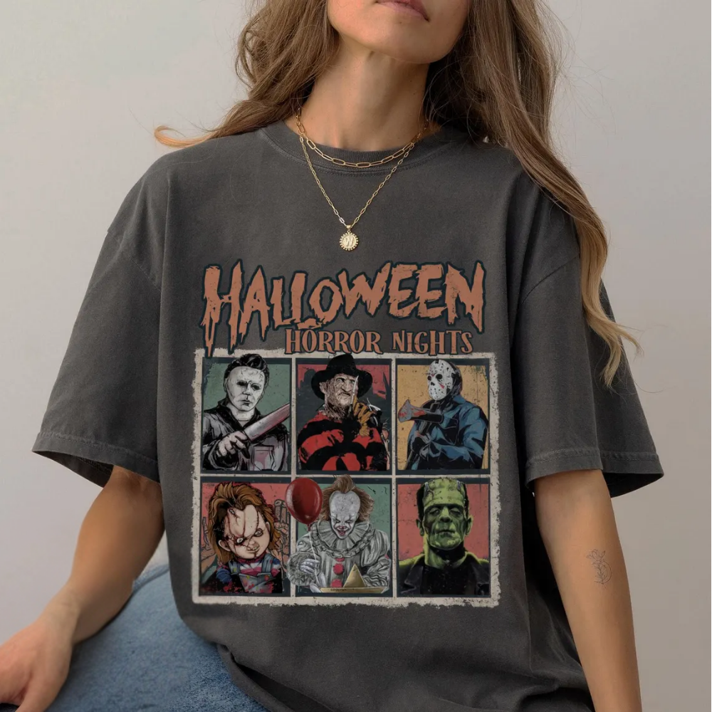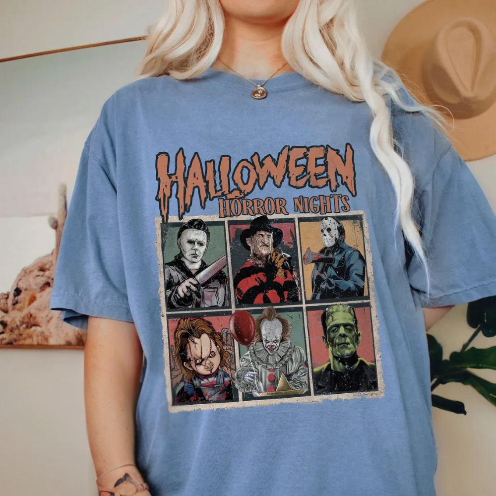 Retro Horror Characters Halloween T-Shirt, Halloween Horror Nights 2025, Halloween Friends Group Matching, Trick or Treat Tee
