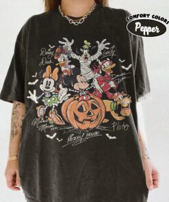 Retro Mickey & Friends with Signs Halloween Shirt, Mickey’s Not So Scary Party 2025 Tee, Trick or Treat Disney Trip Shirt