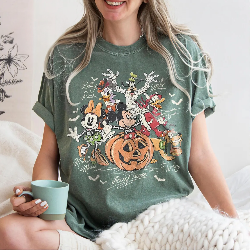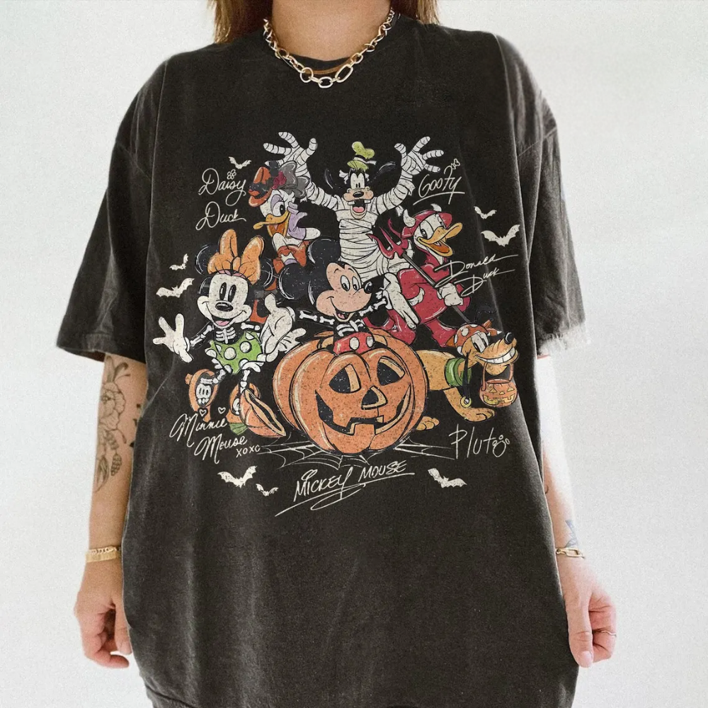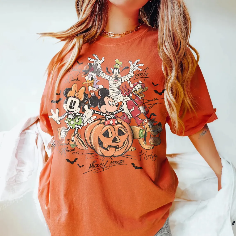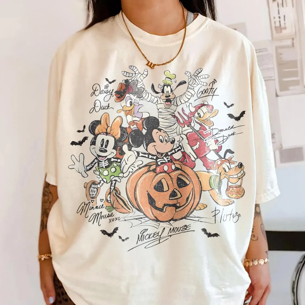 Retro Mickey & Friends with Signs Halloween T-Shirt, Mickey’s Not So Scary Party 2025 Tee, Trick or Treat Disney Trip Shirt