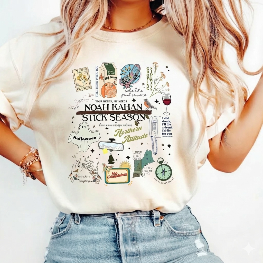 Retro Noah Kahan Songs Shirt, Stick Season, Noah Country Music Concert, Halloween Music, Fall Season, Ghost Sweatshirt, Hoodie, T-Shirt