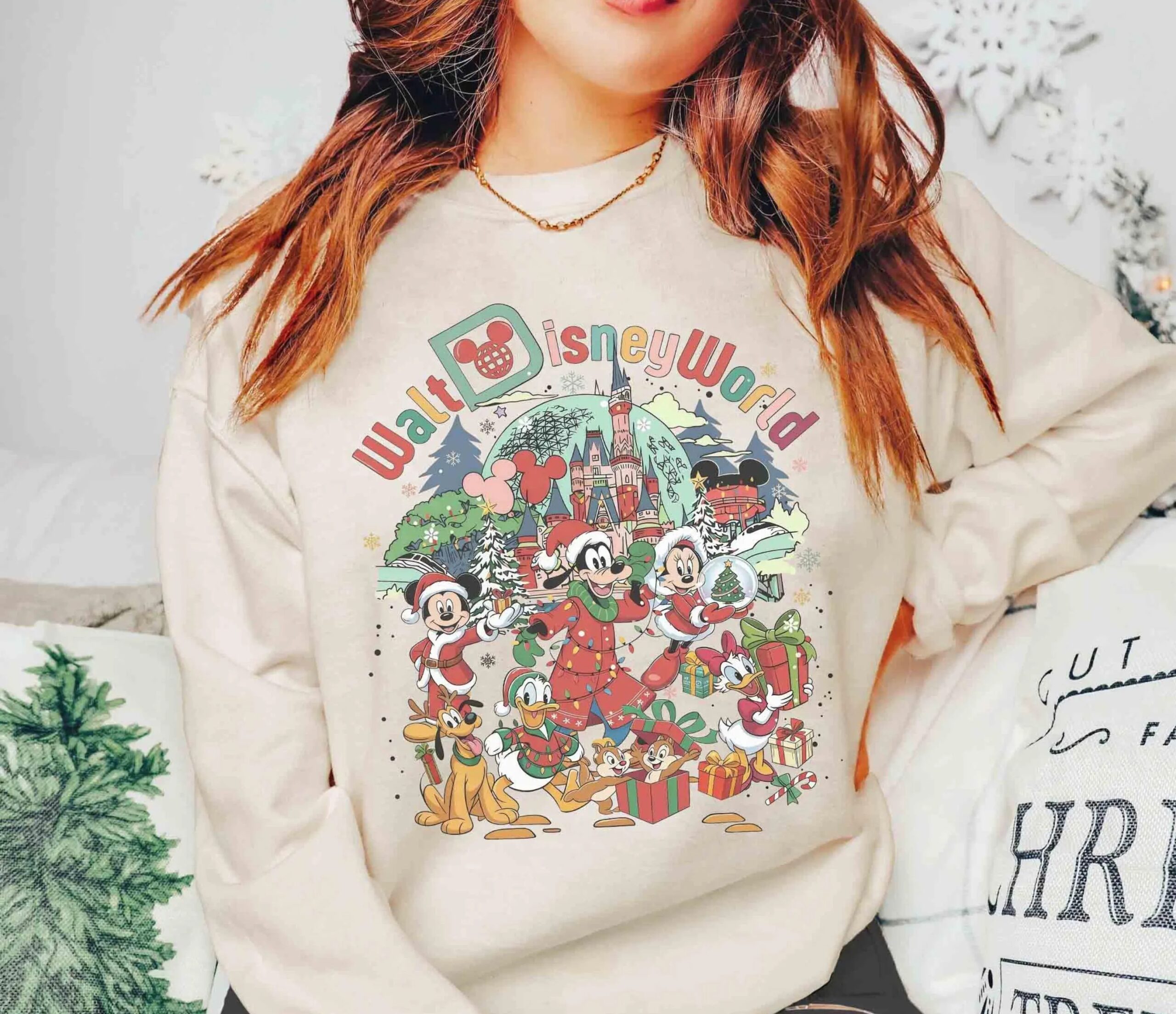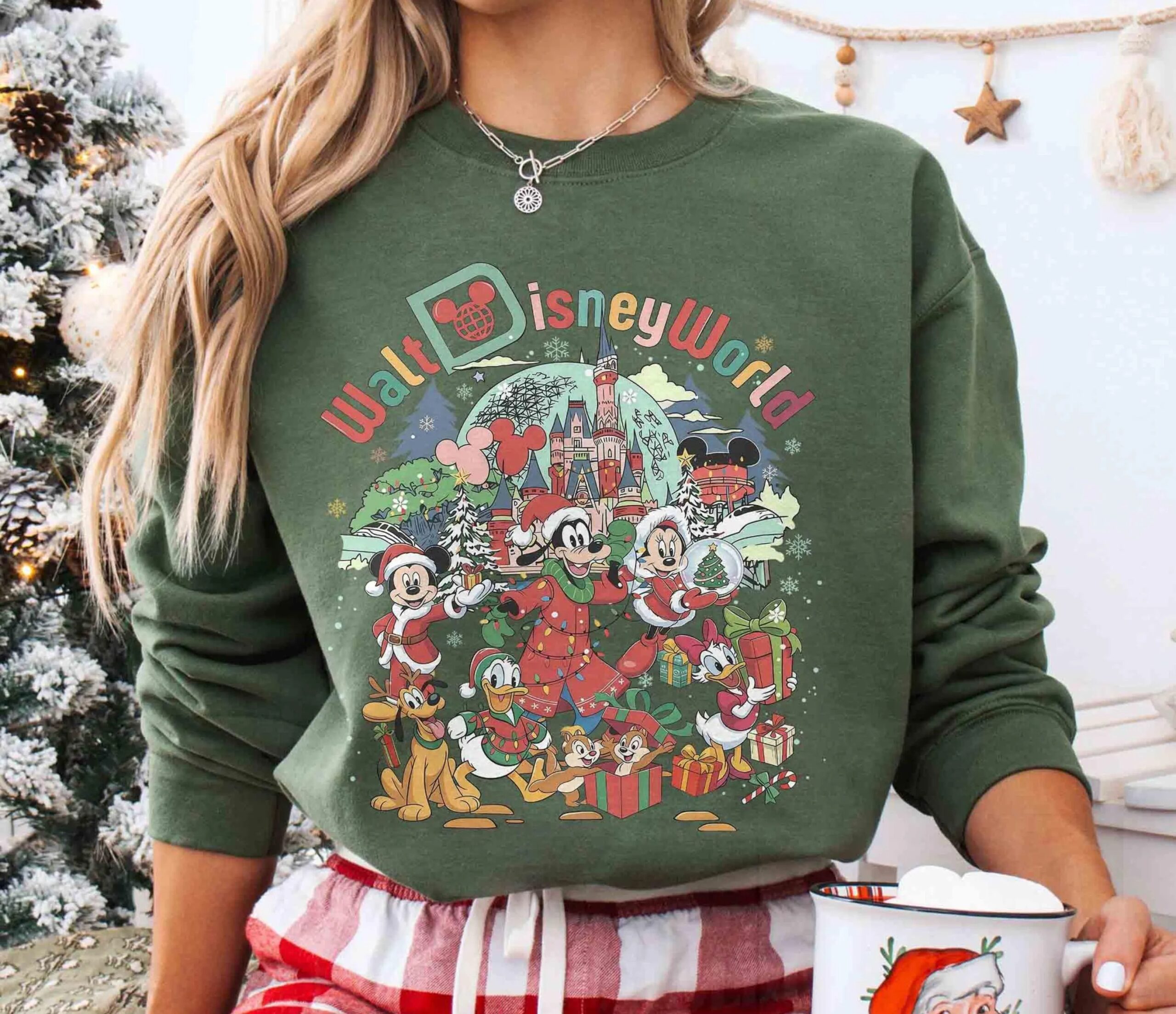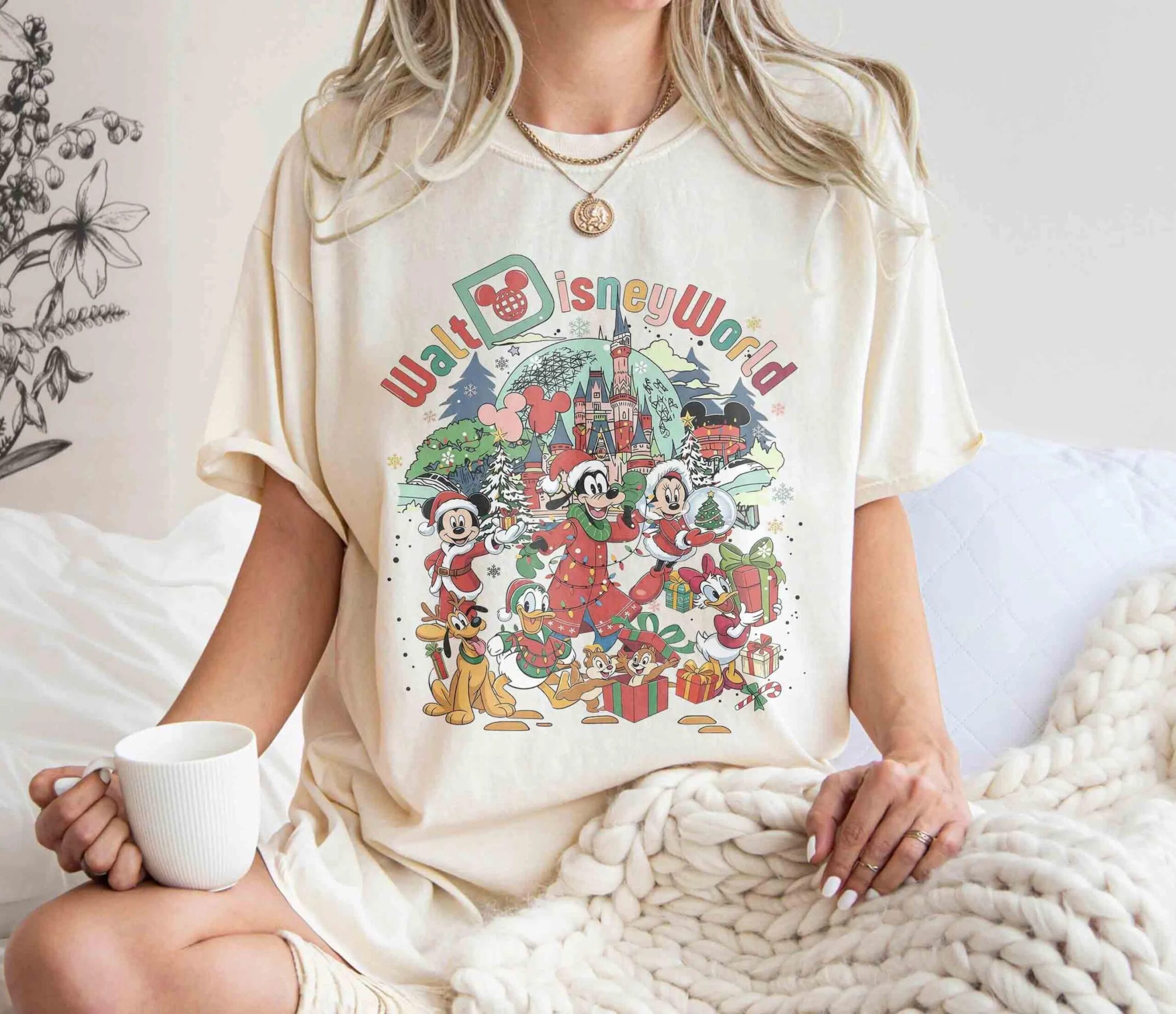 Retro Walt Disney World Christmas Family T-Shirt, Mickey And Friends Christmas Matching Tee, Magic Kingdom Top, Disneyworld Christmas Shirt