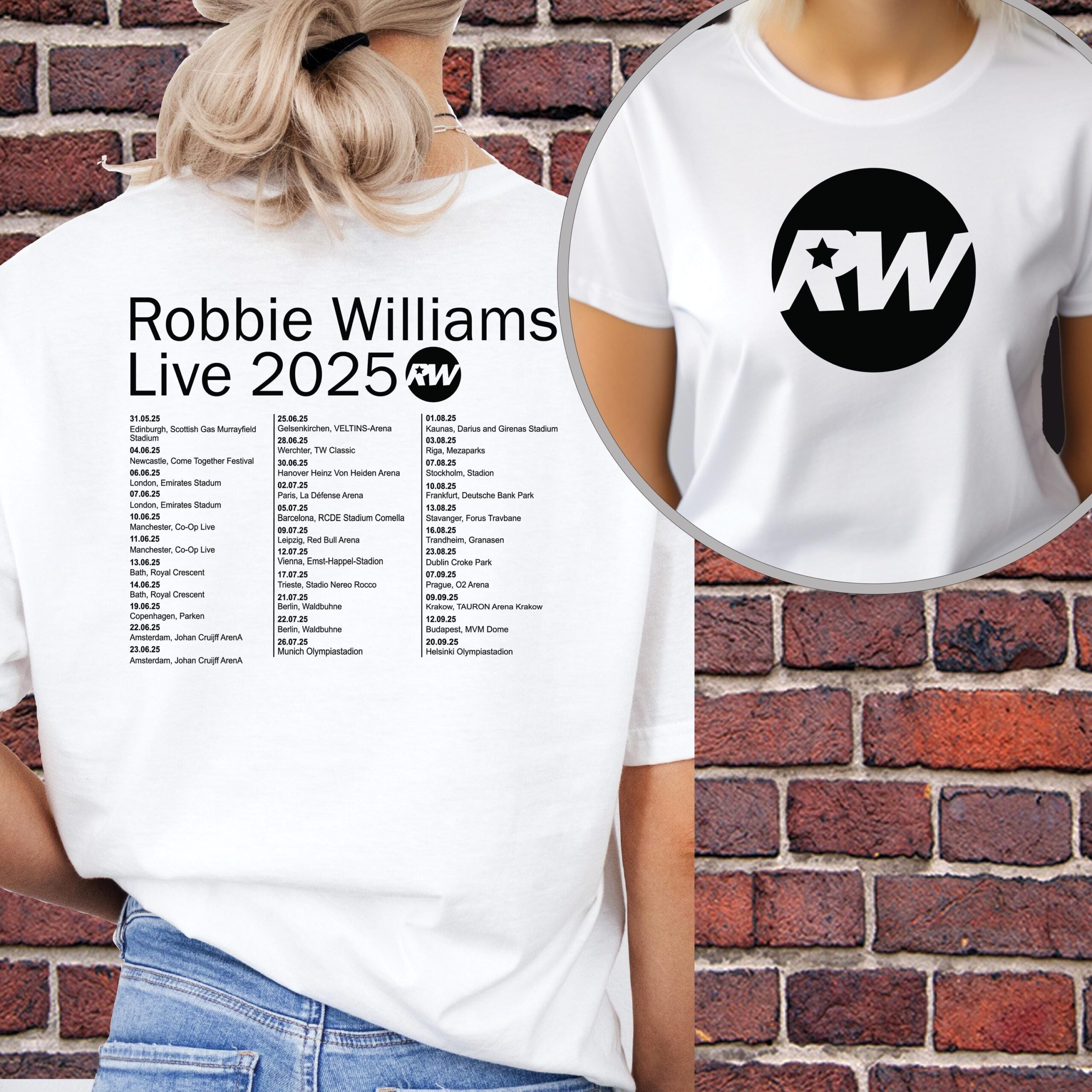 Robbie RW Logo Tour T-shirt, Robbie 2025 UK Tour T-Shirt, Robbie Williams Tee, Concert Tshirt, Live 2025 UK Tour Music Fan Concert Tee