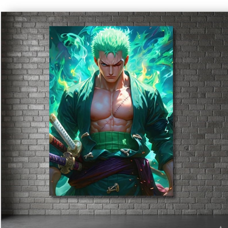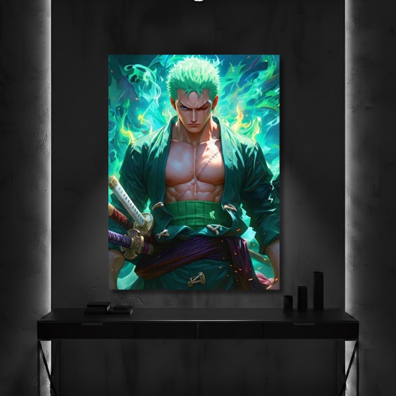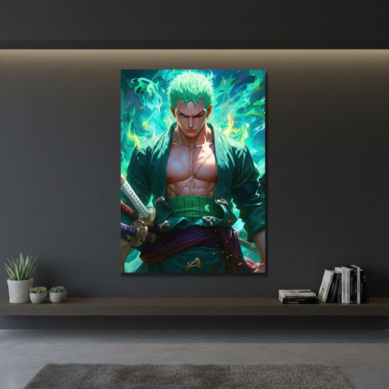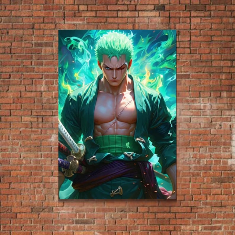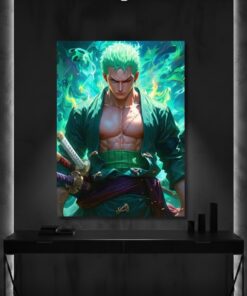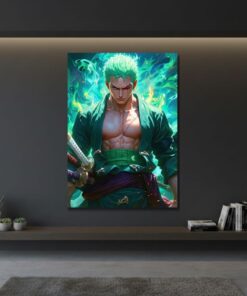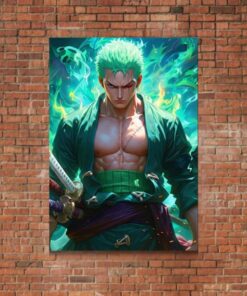 Be the first to review “Roronoa Zoro Green Aura Metal Poster, One Piece Anime Wall Art, Three Sword Style”