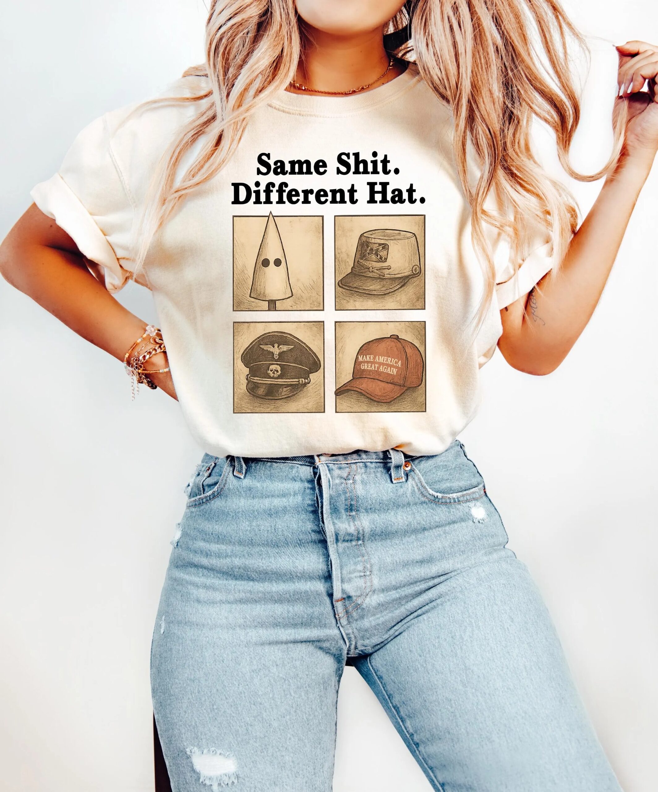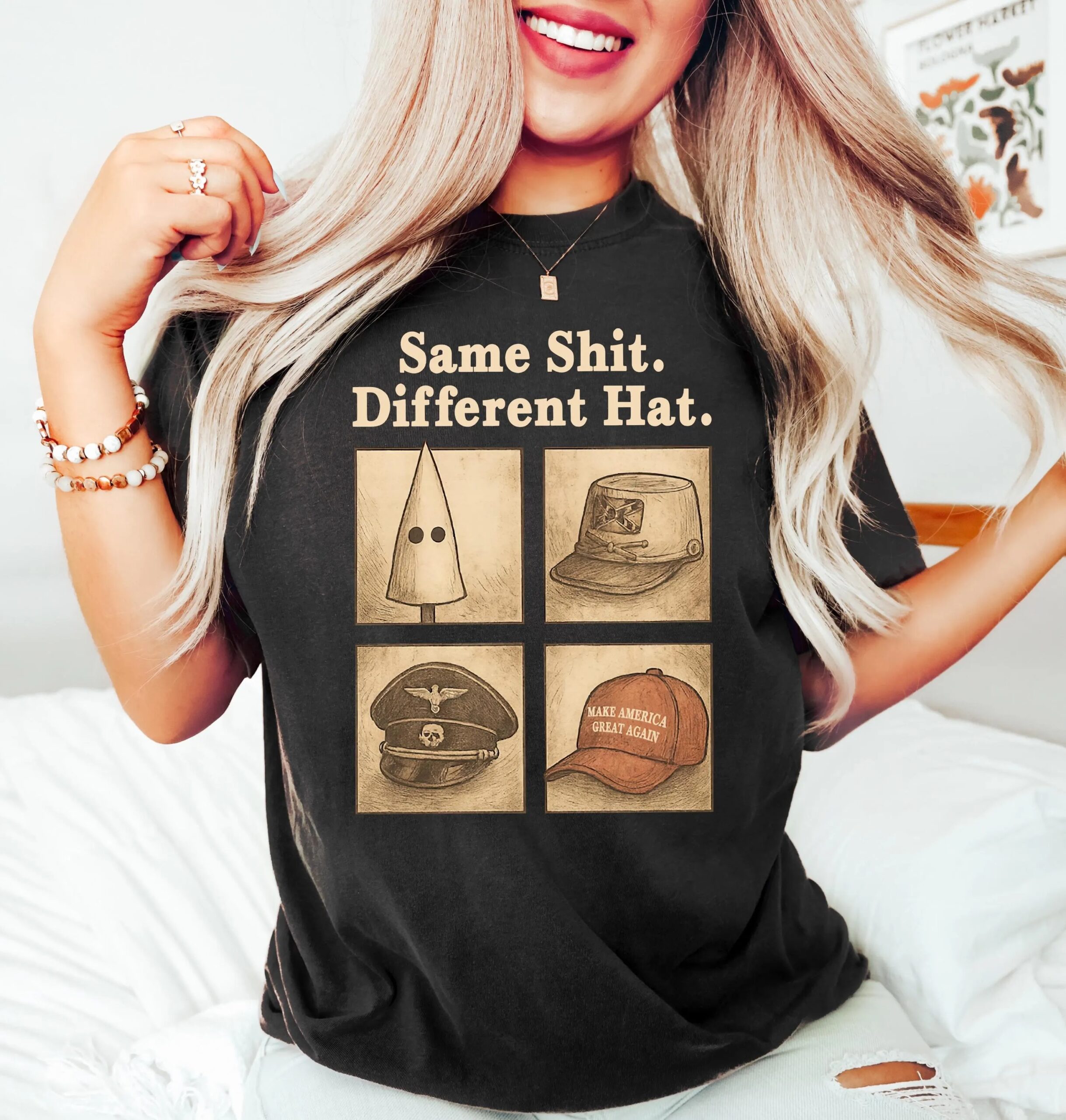 Same Shit Different Hat T-Shirt, Anti Trump Political Shirt, Funny Protest Graphic Tee, Dark Humor Statement Top