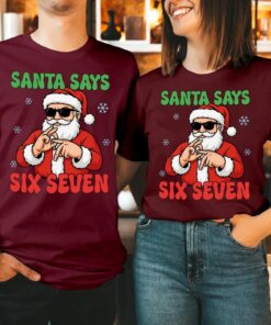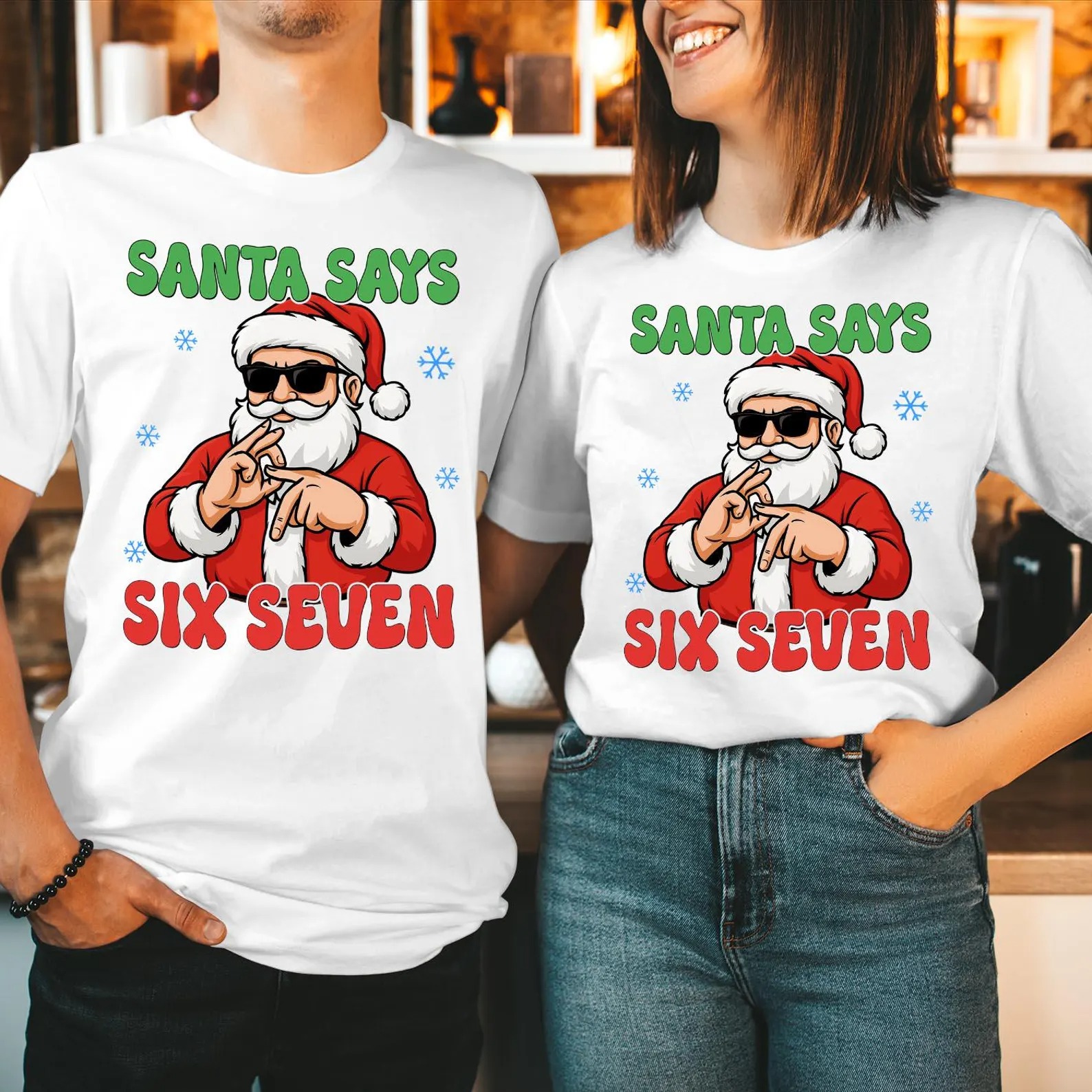 Santa Says Six Seven Meme T-Shirt, Funny Christmas 67 Meme Tee, 6 7 Meme Xmas Gift, Holiday Party Outfit Shirt
