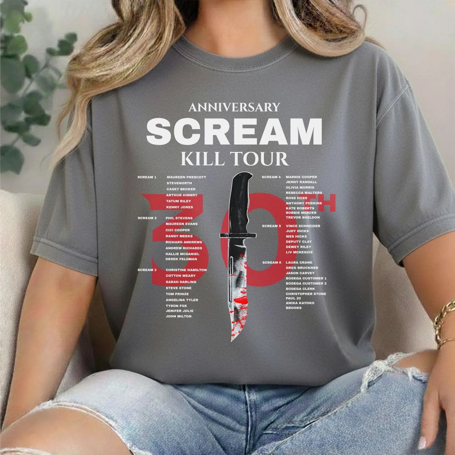 Scream 7 Kill Tour 2026 Shirt, 30Anniversary Horror Movie Graphic Tee, Retro Ghost Killer Unisex T-Shirt