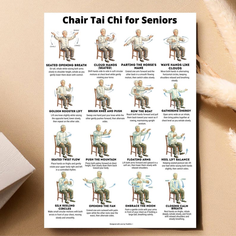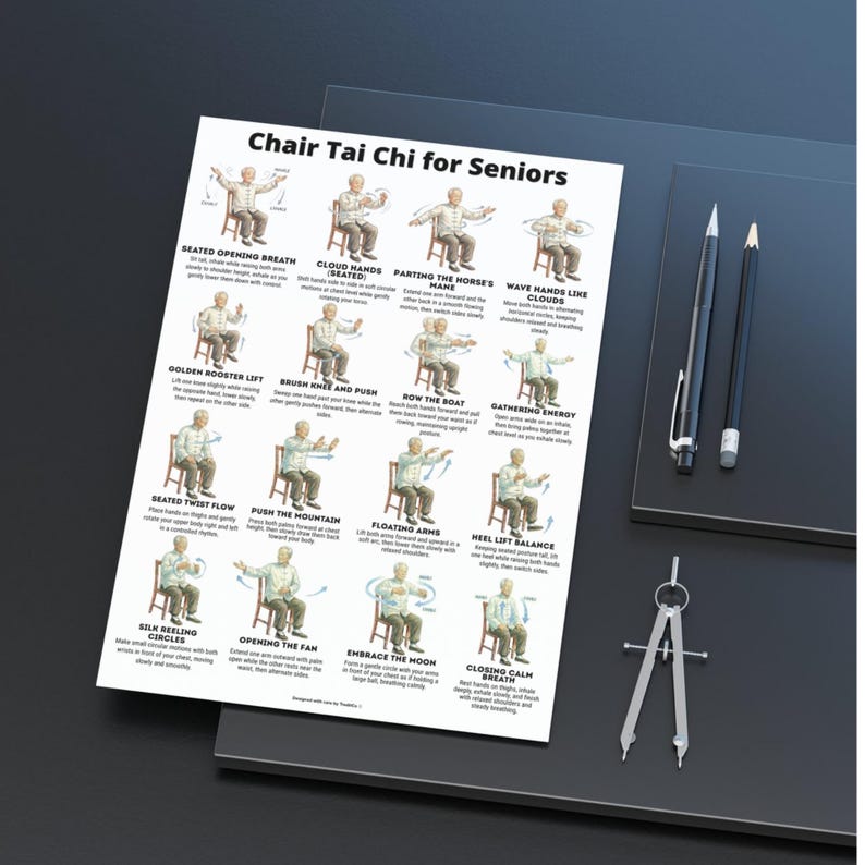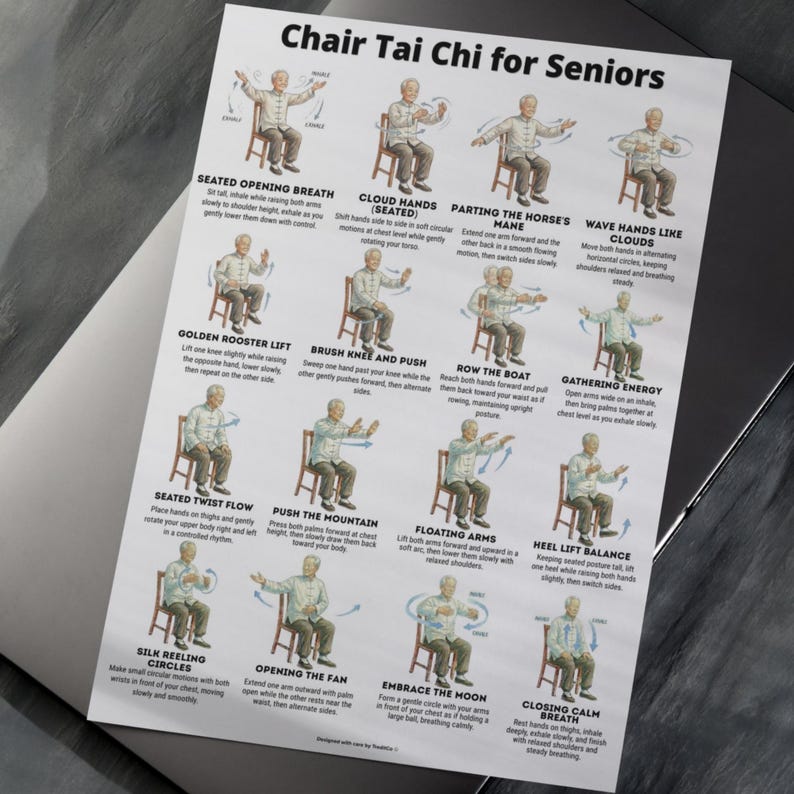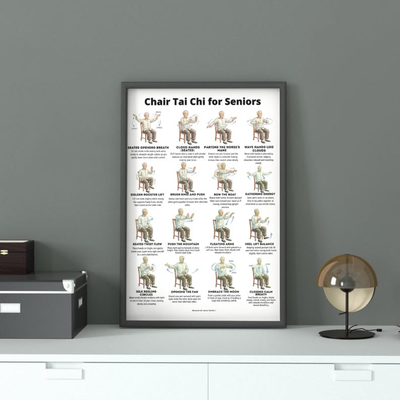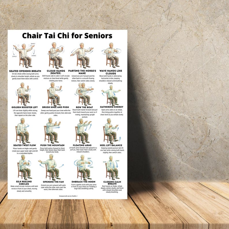 Seated Chair Tai Chi for Seniors Chart Balance & Gentle Home Workout Wall Art