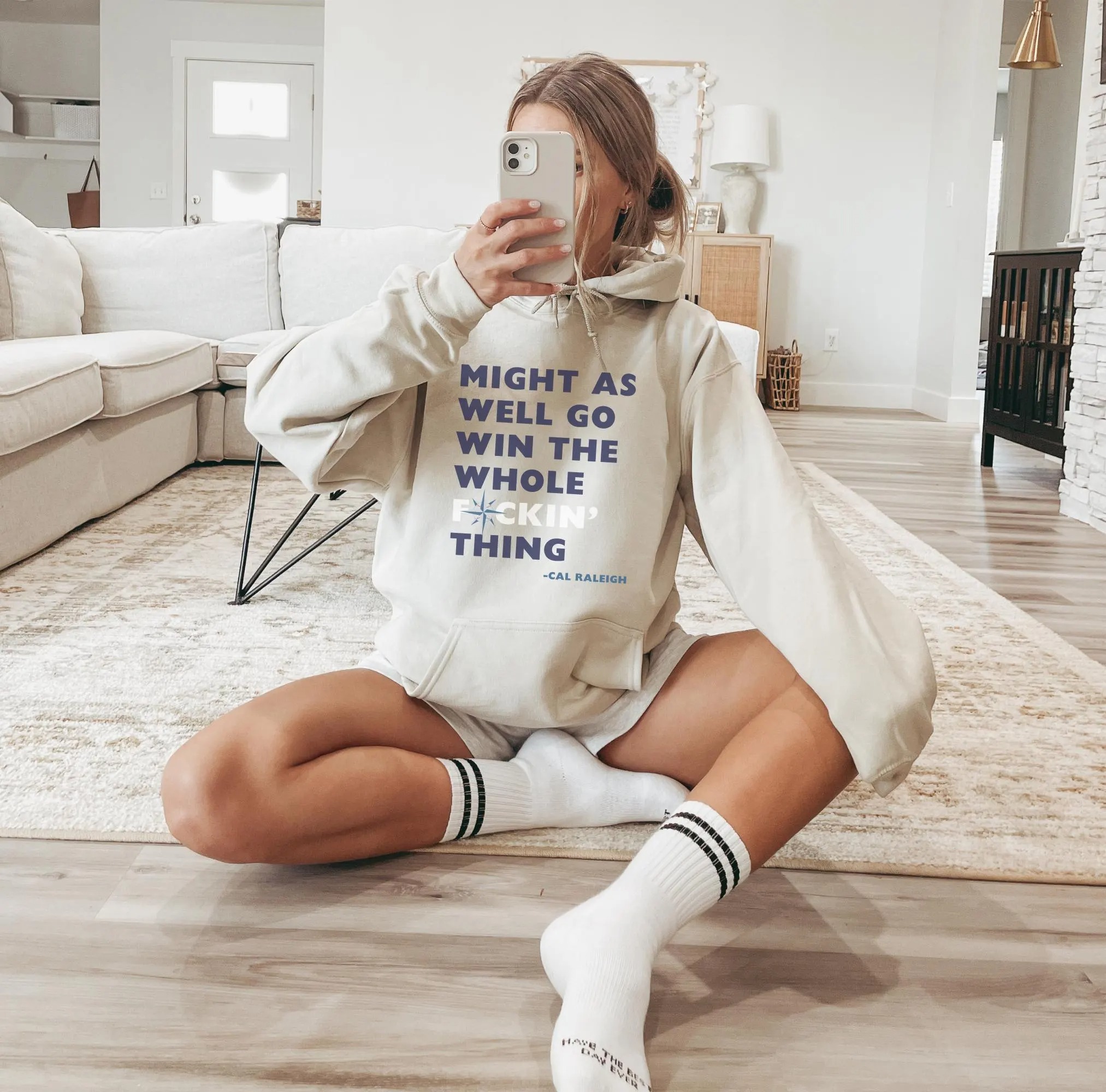 The sweatshirt feels thick and well-made. The text design is bold but minimal — just my style.
