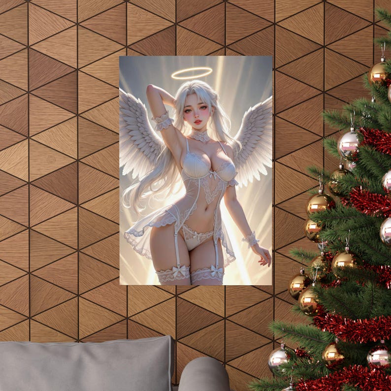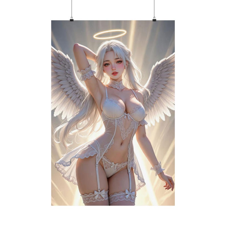 Sexy Angel Fantasy Art Print, Pinup Anime Poster, Ethereal Lingerie Style