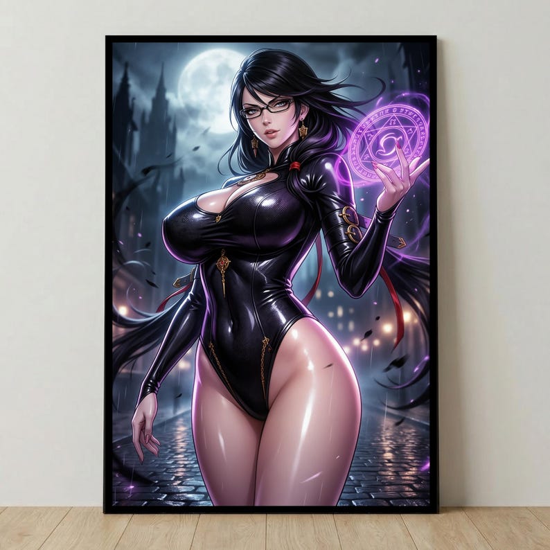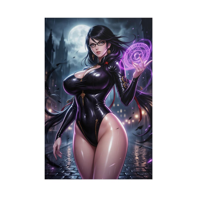 Sexy Bayonetta Fantasy Art Print, Pinup Anime Poster, Video Game Manga Style