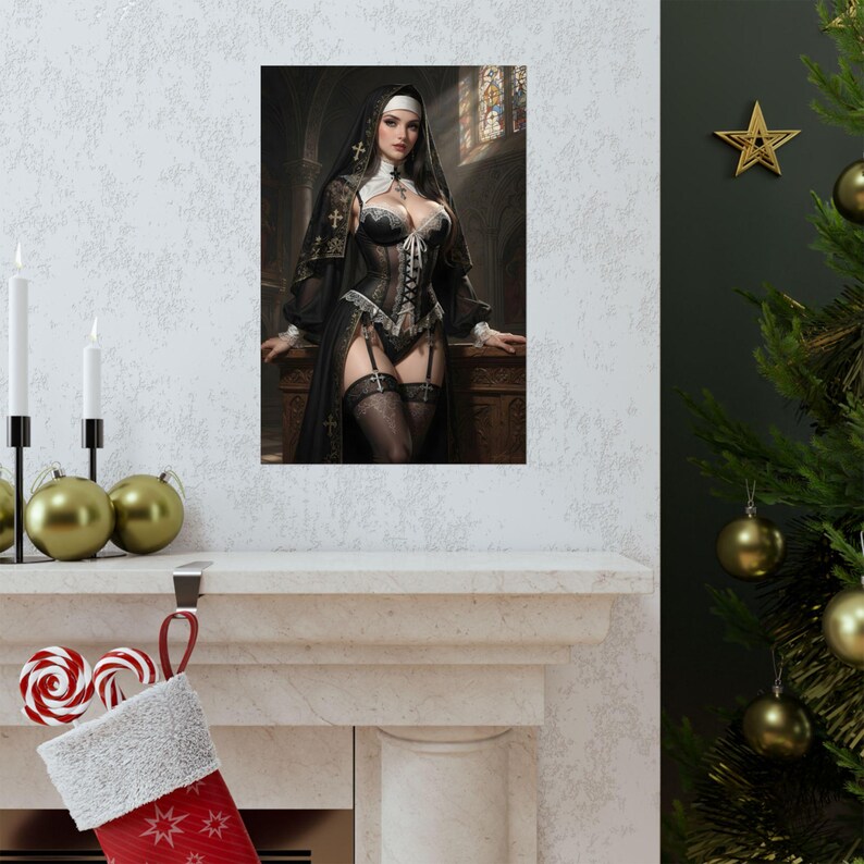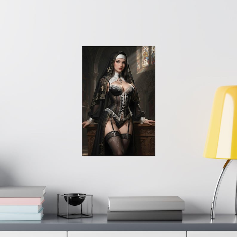 Be the first to review “Sexy Gothic Nun Fantasy Art Print, Pinup Anime Poster, Manga Style Wall Decor”