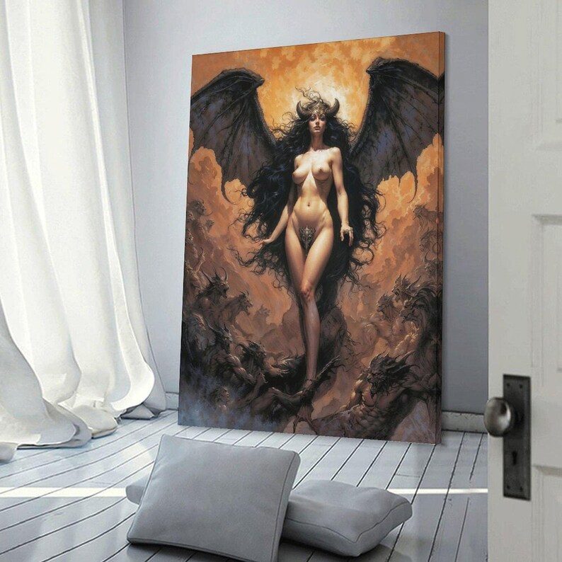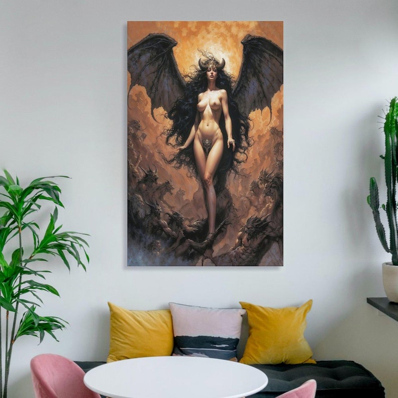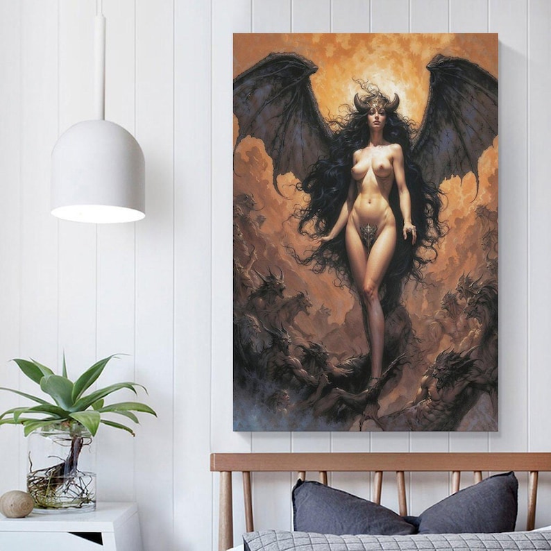 Sexy Lilith Fantasy Art Print, Pinup Anime Poster, Dark Demon Manga Style