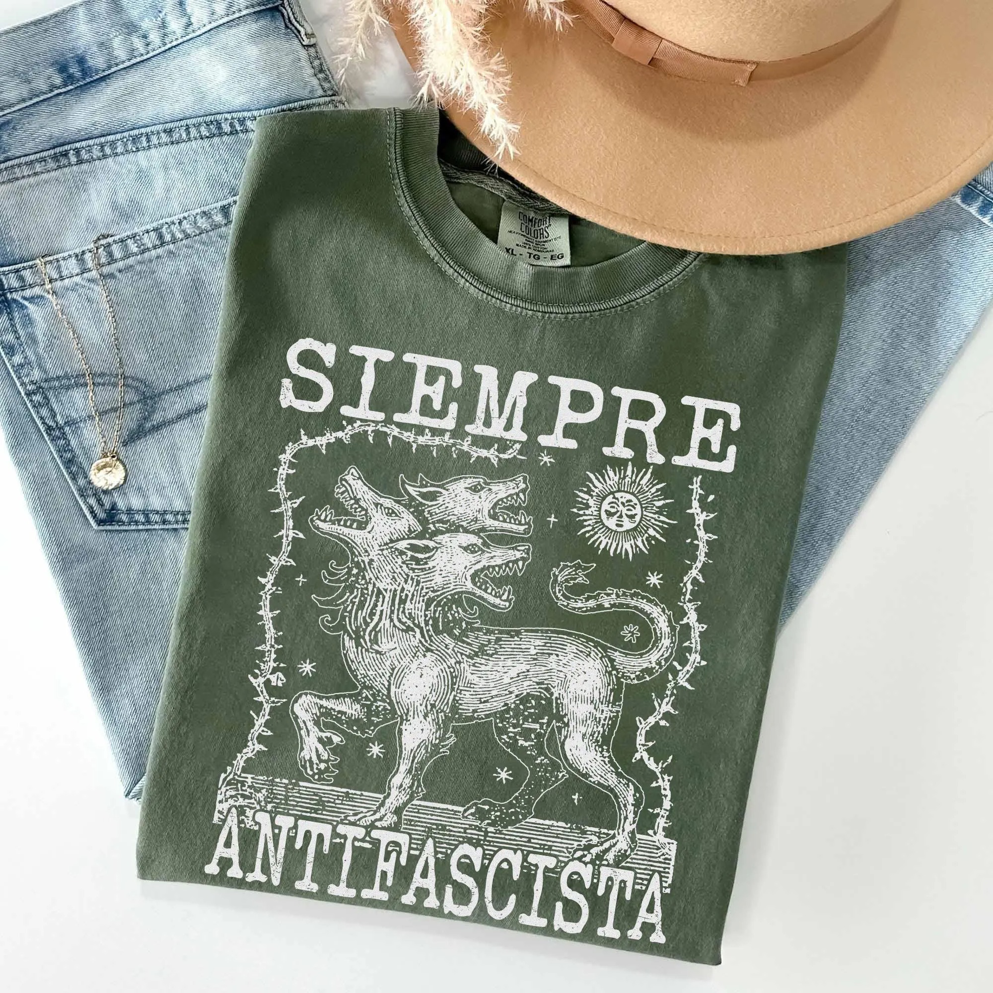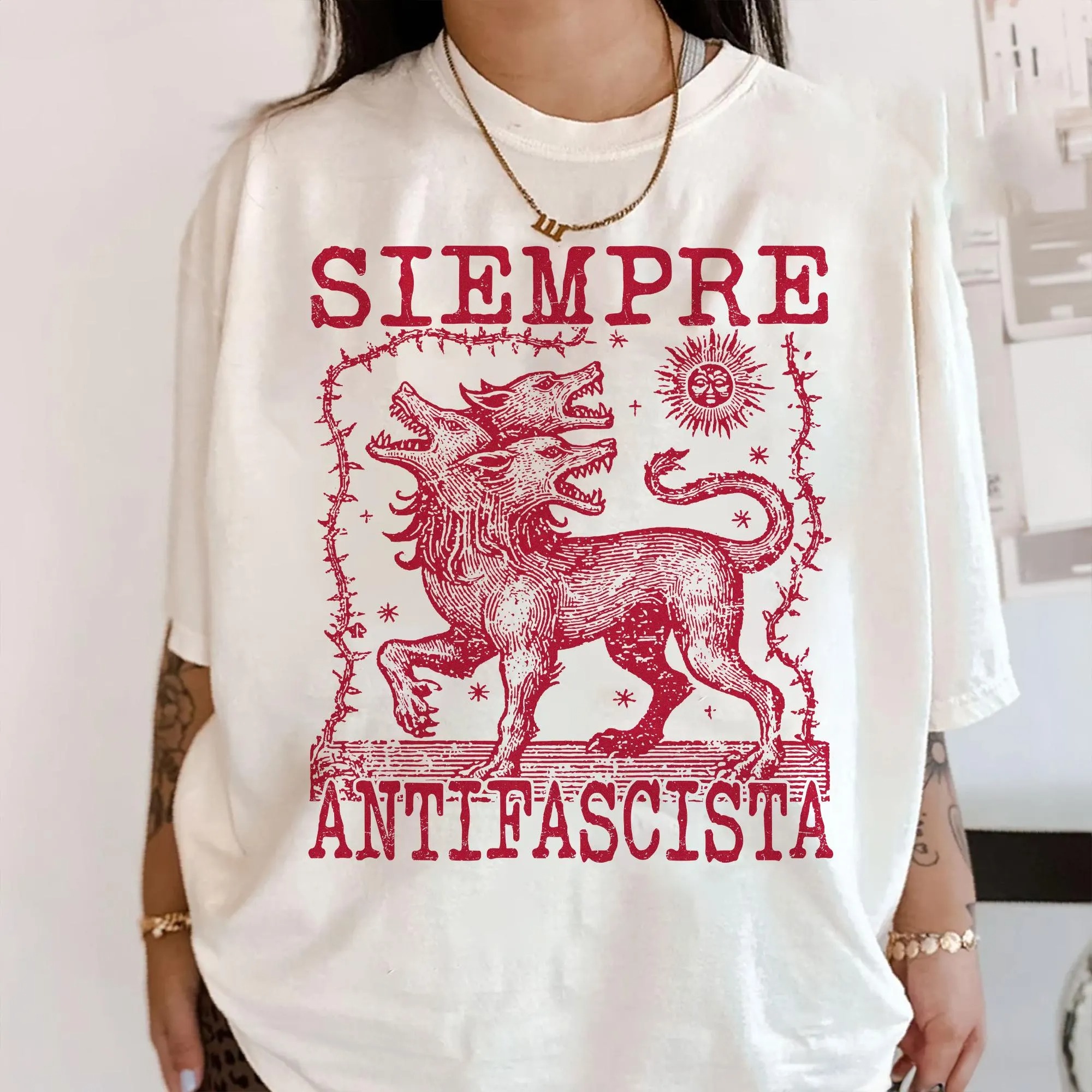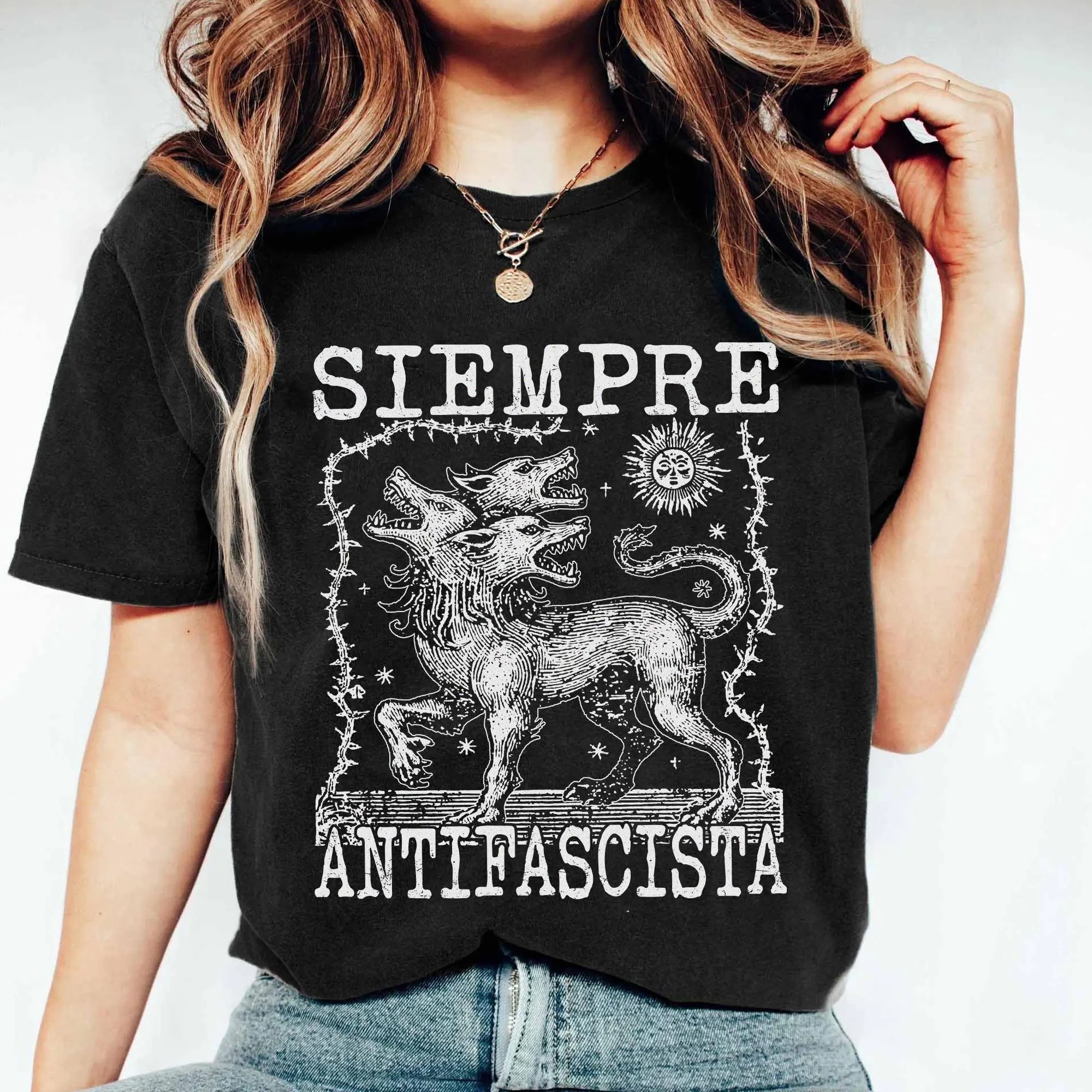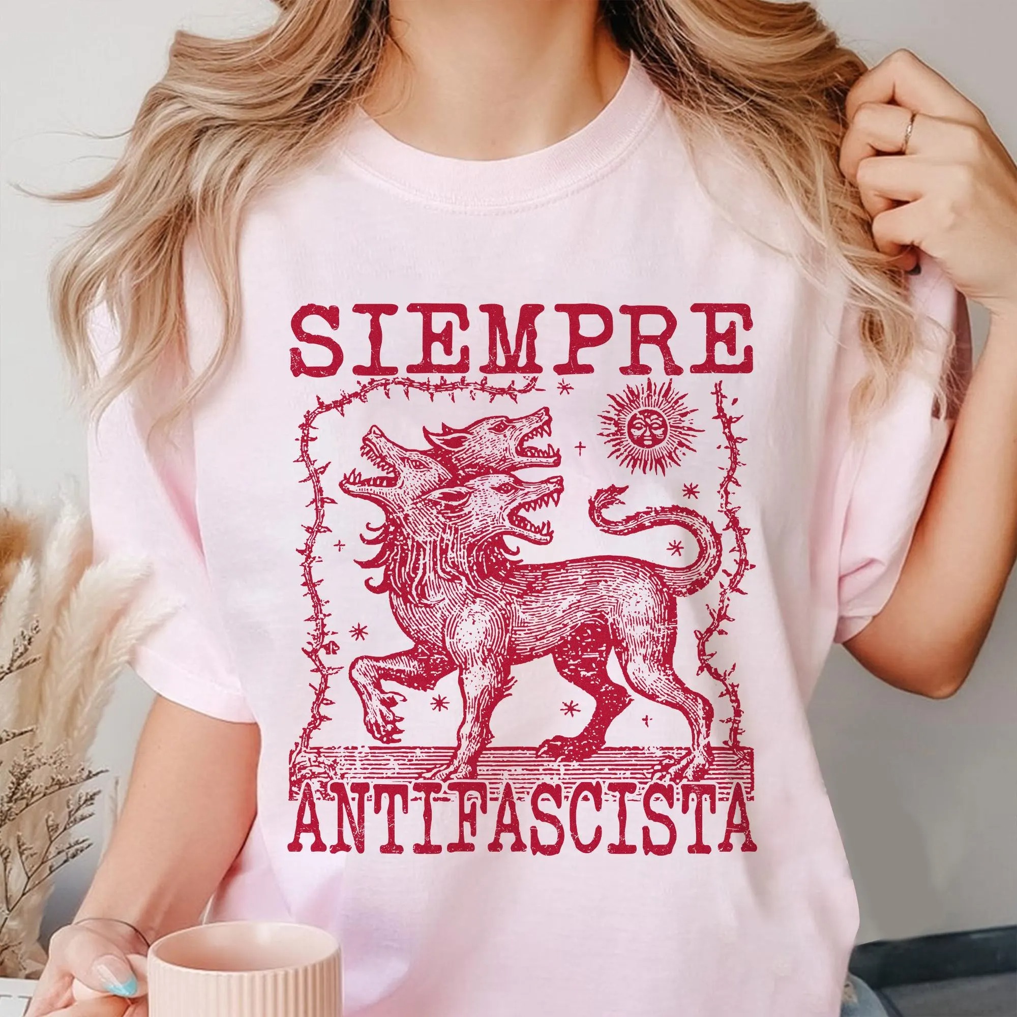 Siempre Antifascista T-Shirt, Hydra Dog Tee , Anti Fascist Top, Protest Shirt, Resist Fascism, Protest March Sign, Immigrant Rights, Anti Nazi