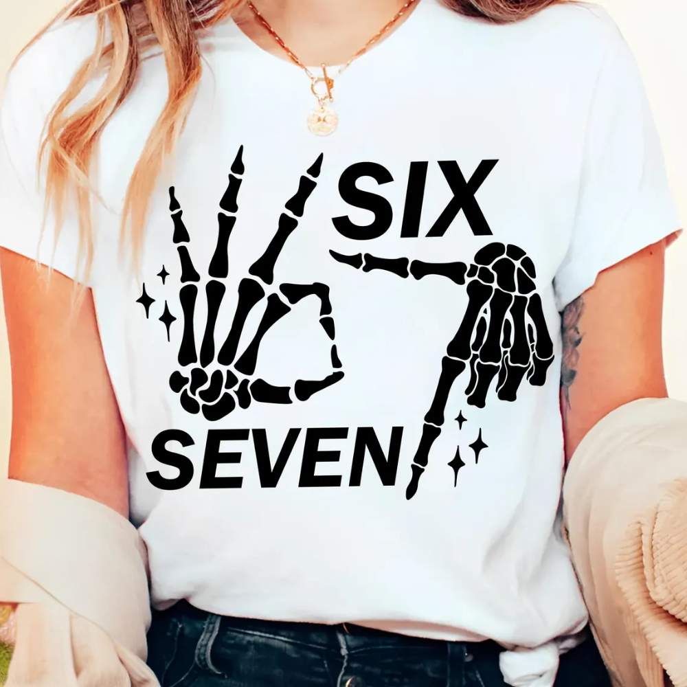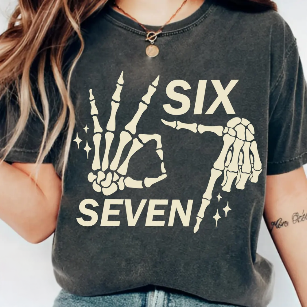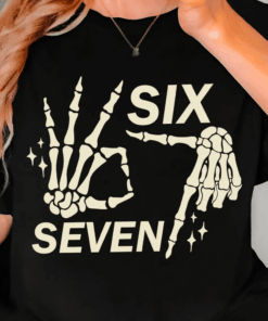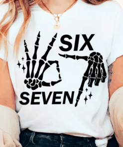 Six Seven 6 7 Meme, Funny Skeleton Hands Tshirt, Funny Halloween Bones Tee, Spooky Skull Shirt