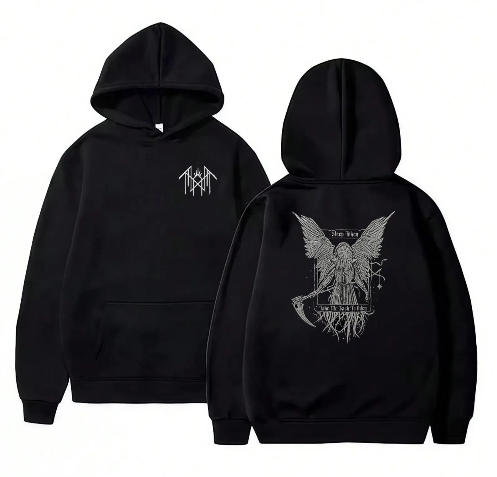 Sleep Token Embroidered Hoodie, Take Me Back To Eden Sweatshirt, Angel Grim Reaper T-Shirt, Metal Band Merch, Gothic Streetwear