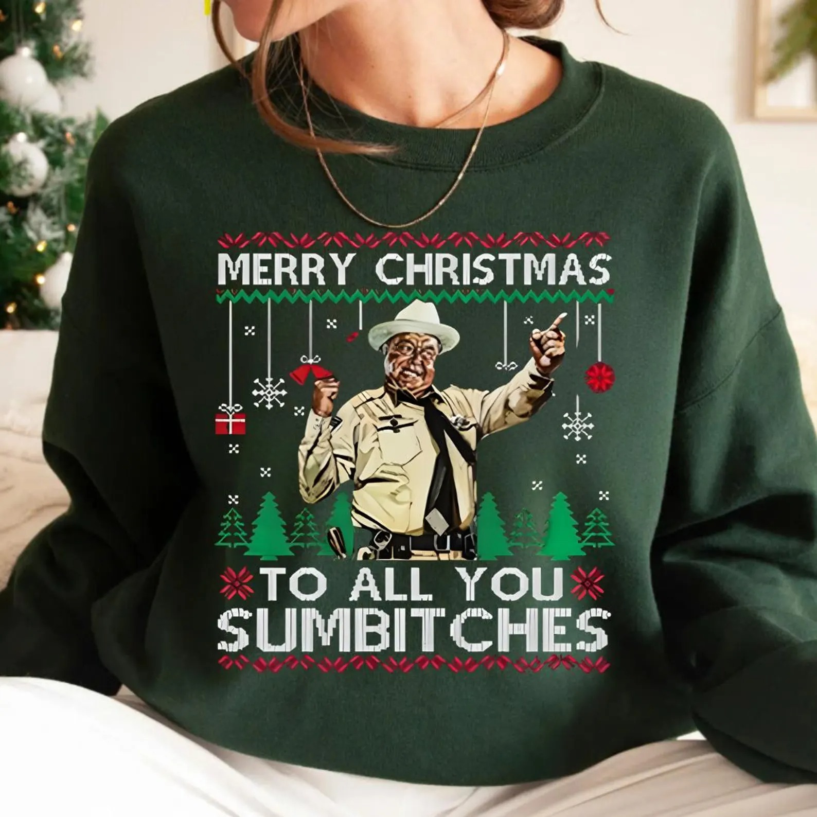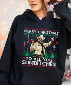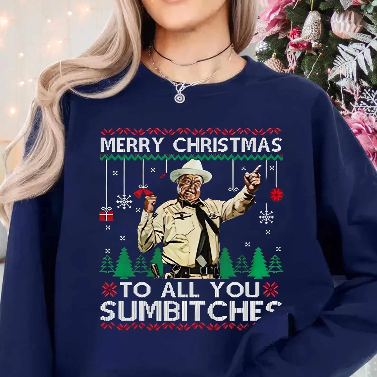 Smokey And The Bandit Shirt, Merry Christmas Too All You Sumbitches Christmas Hoodie, Smokey And The Bandit Funny Ugly Xmas Sweatshirt