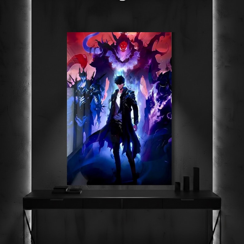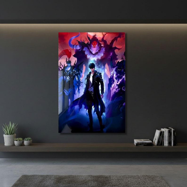 Be the first to review “Solo Leveling Sung Jin-Woo Metal Poster, Shadow Monarch Wall Art, Manga Fan Decor”