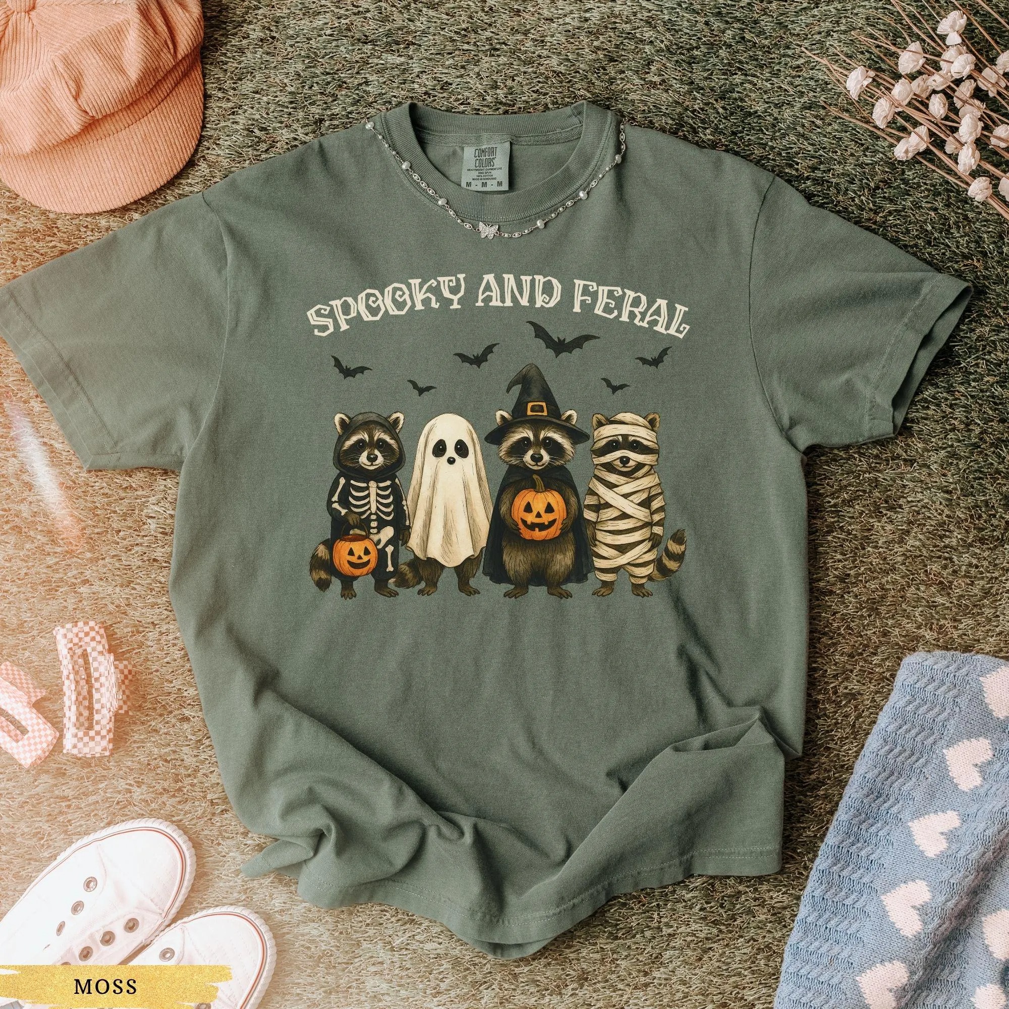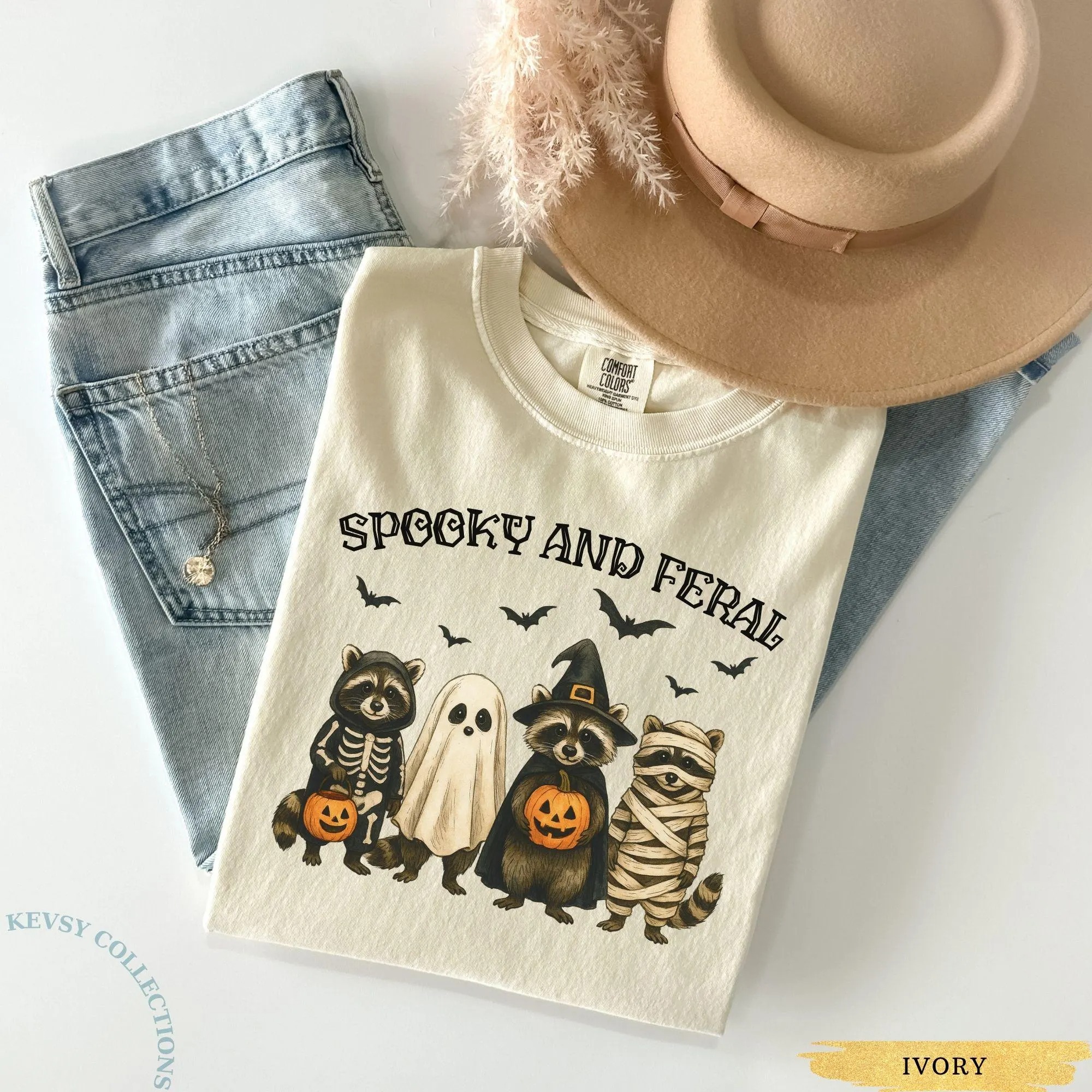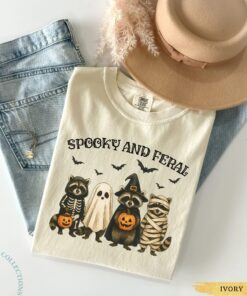 Spooky and Feral Raccoon Tshirt, Funny Halloween Raccoon Shirt, Cute Trendy Womens Halloween Tee, Vintage Fall Top
