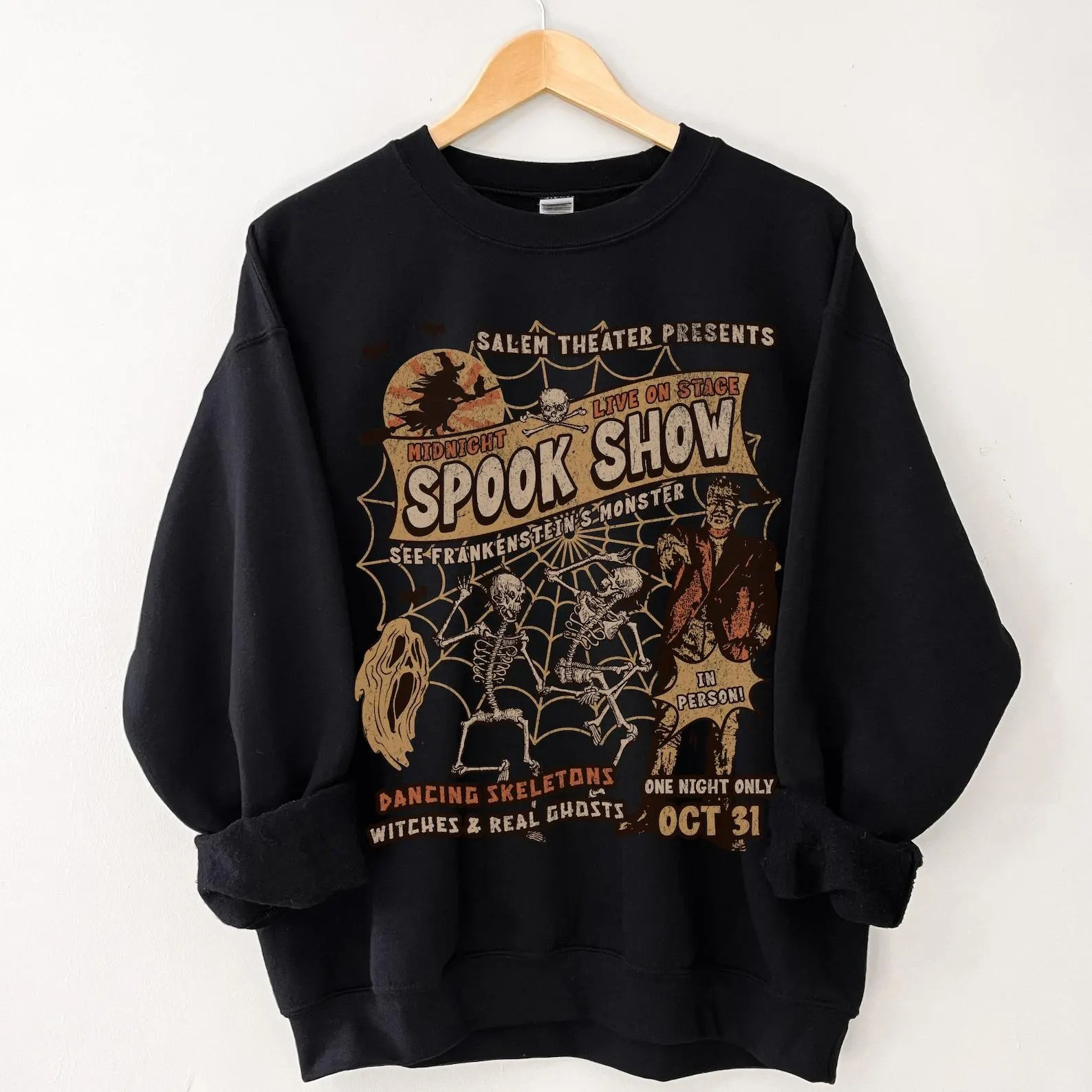 Spooky Halloween Horror Sweatshirt, Cult Classic Monster Mash Shirt, Vintage Skeletons & Frankenstein Top