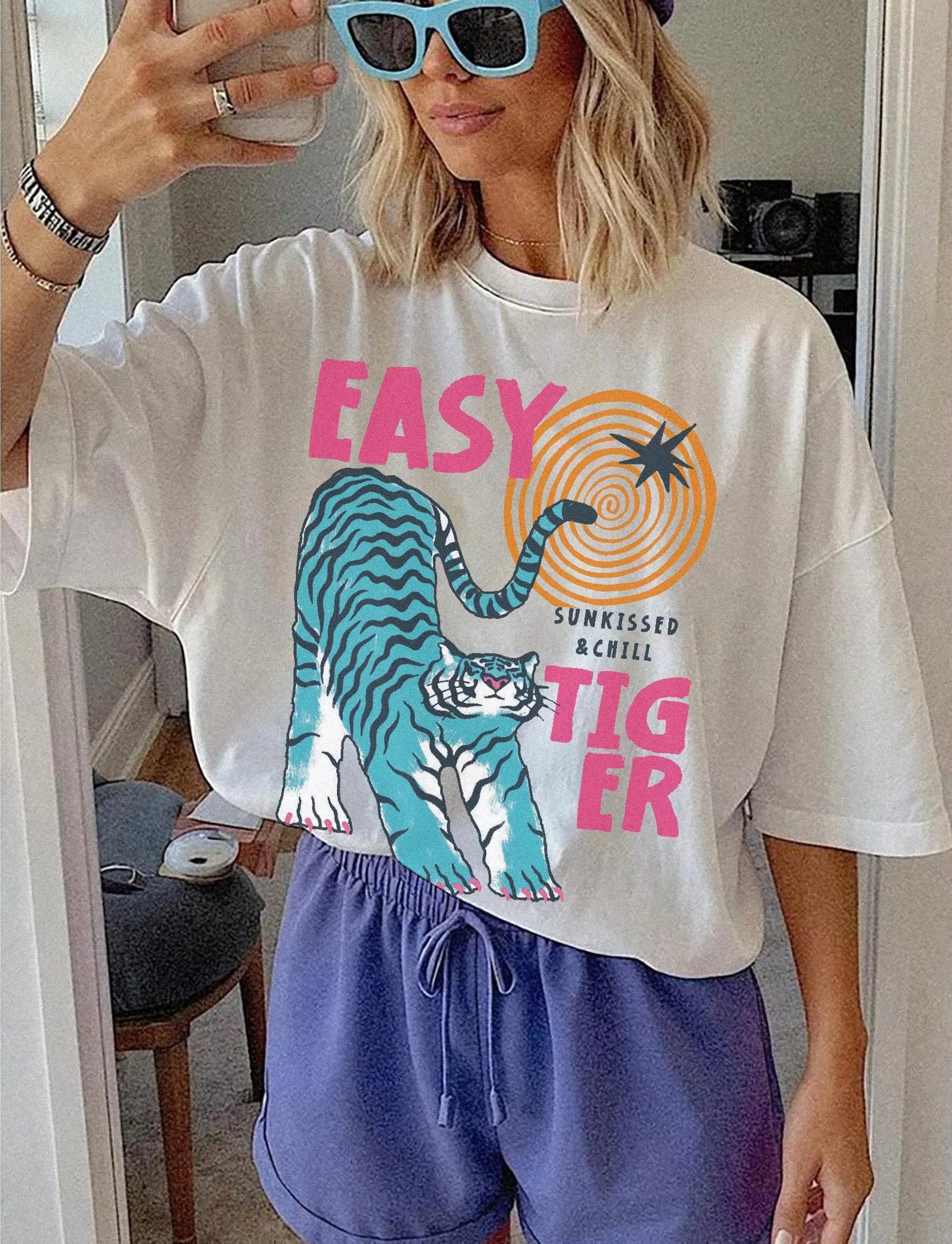 Sun-kissed Tiger Unisex Shirt, Retro Tiger Graphic Tee, Summer Boho Beach Vibe