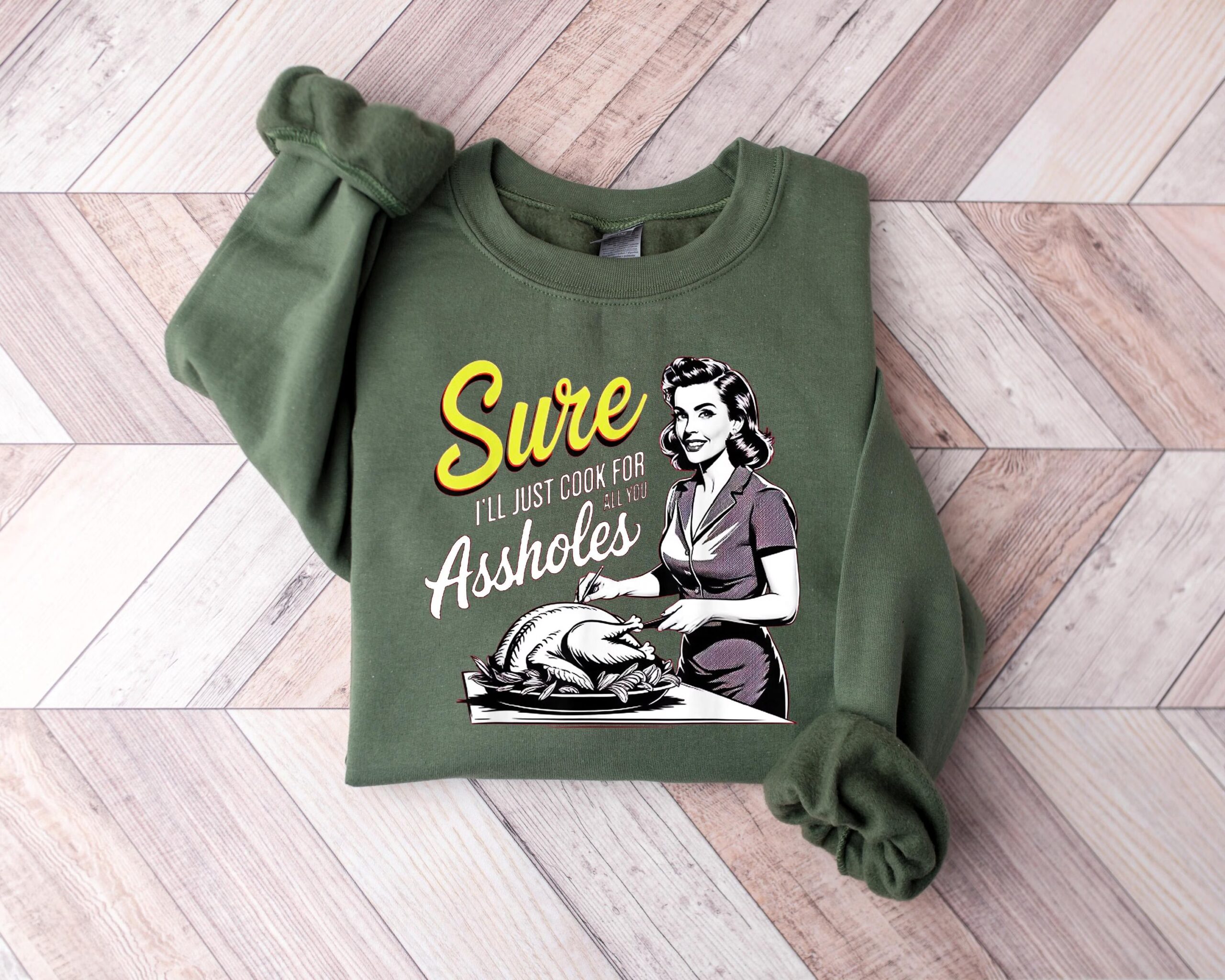 Sure I’ll Just Cook For All You Asshole Lady Thanksgiving T-Shirt, Funny Thanksgiving Shirt, Friendsgiving Tee