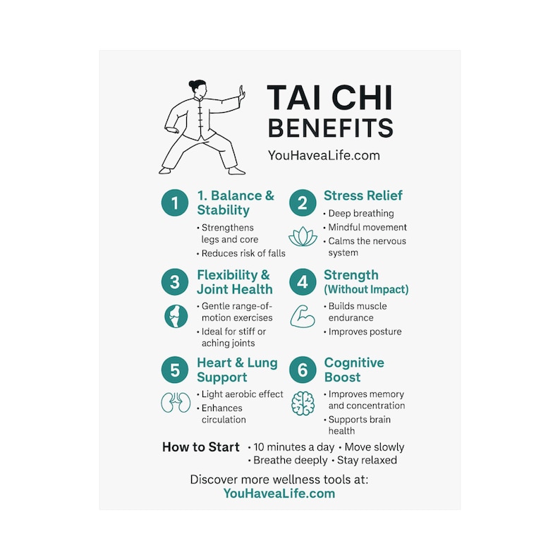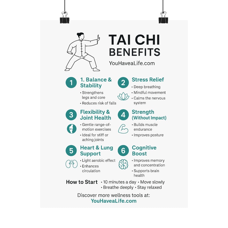 Tai Chi Benefits Matte Poster, Wellness Infographic Wall Art, Balance & Stress Relief Print