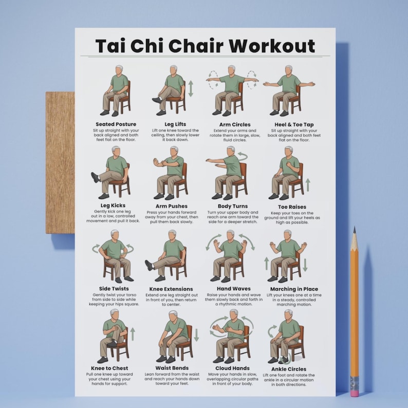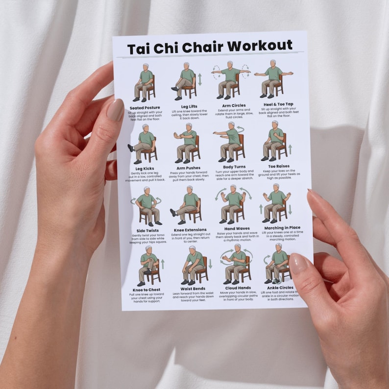 Tai Chi Chair Workouts Poster, Seated Exercise Chart, Gentle Mobility Wall Art
