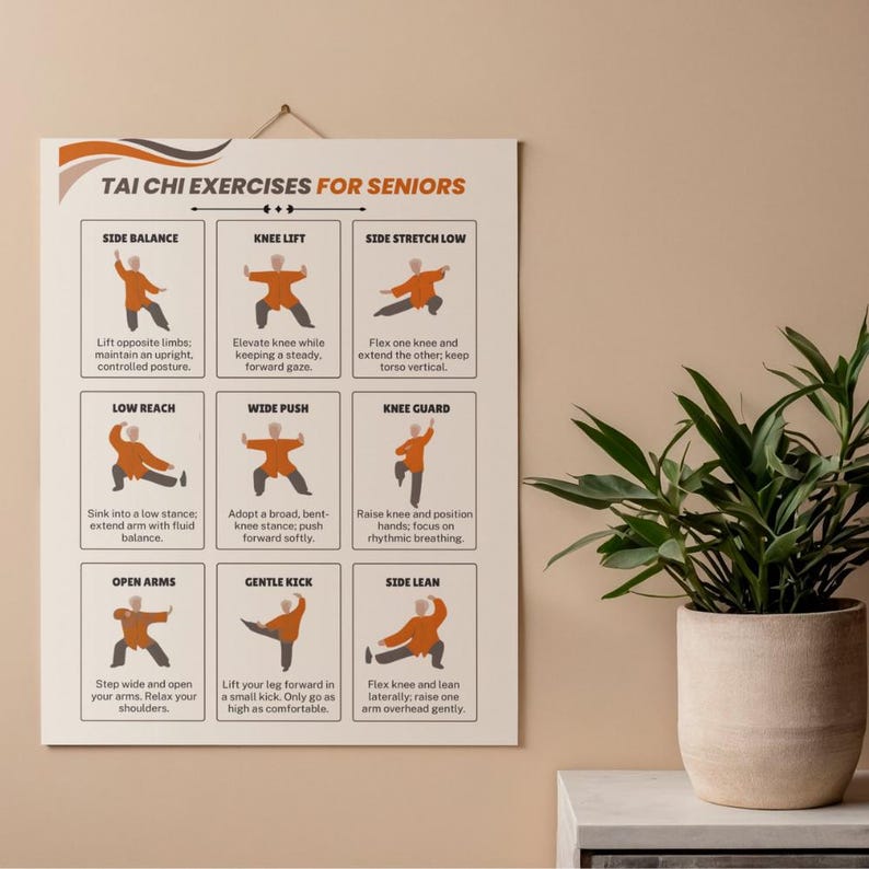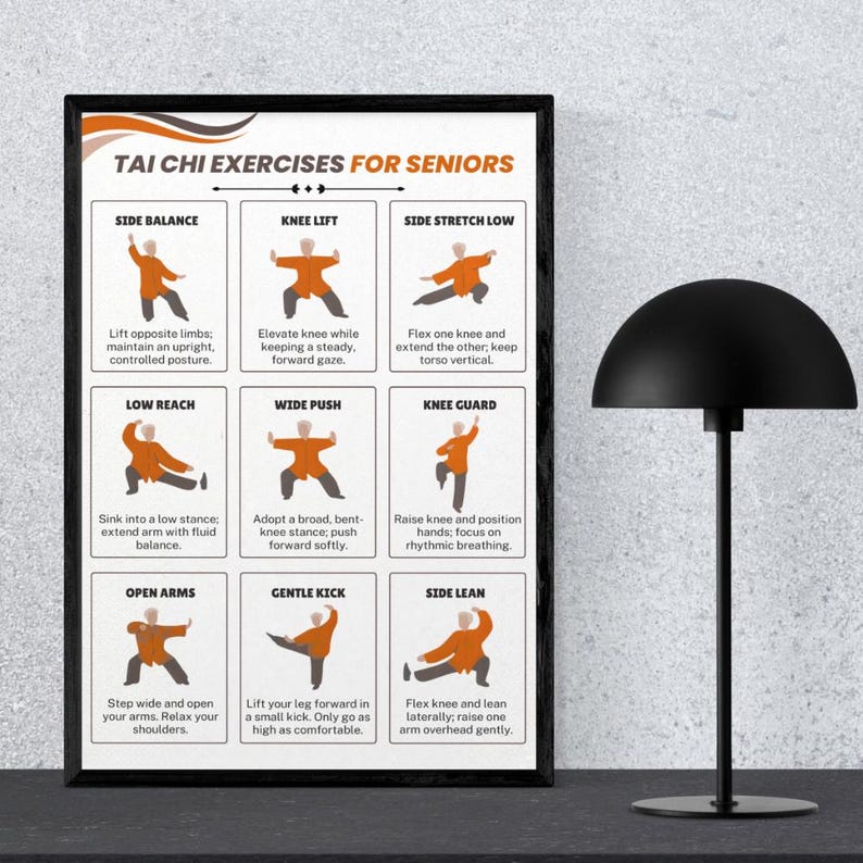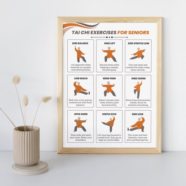 Tai Chi Exercises for Seniors Poster, Senior Workout Chart, Balance & Mobility Wall Art
