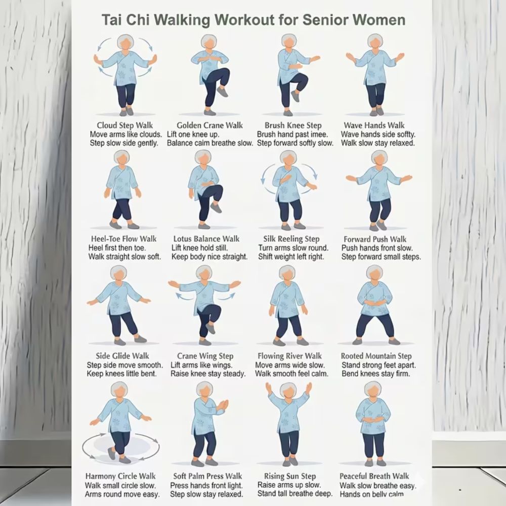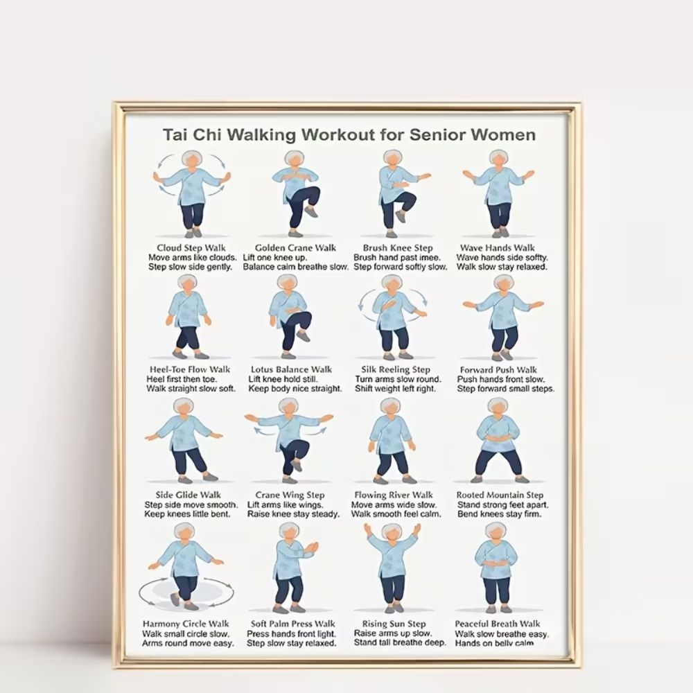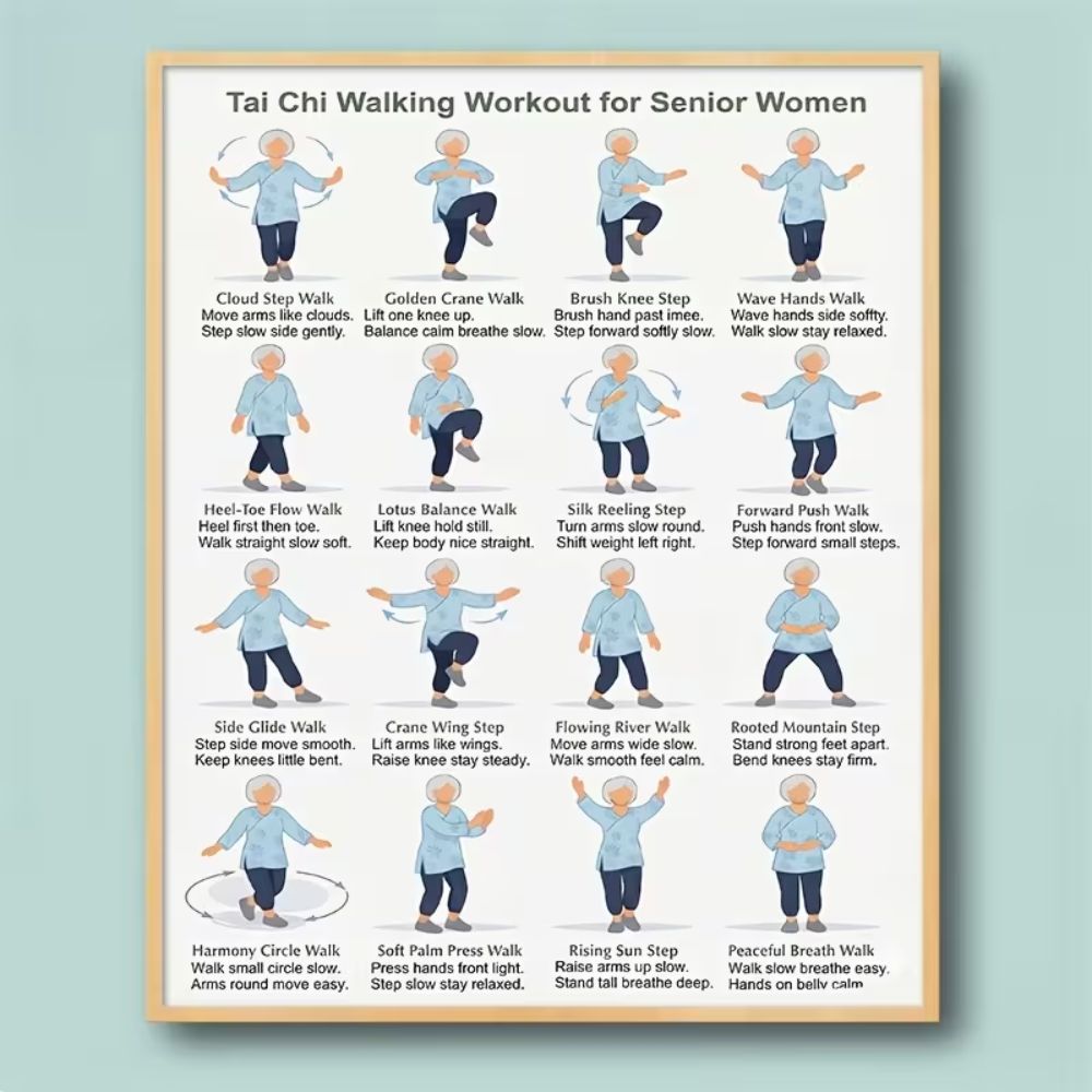 Tai Chi Walking Workout Poster Senior Women Balance Mobility Exercise Wall Art