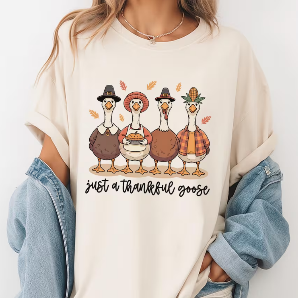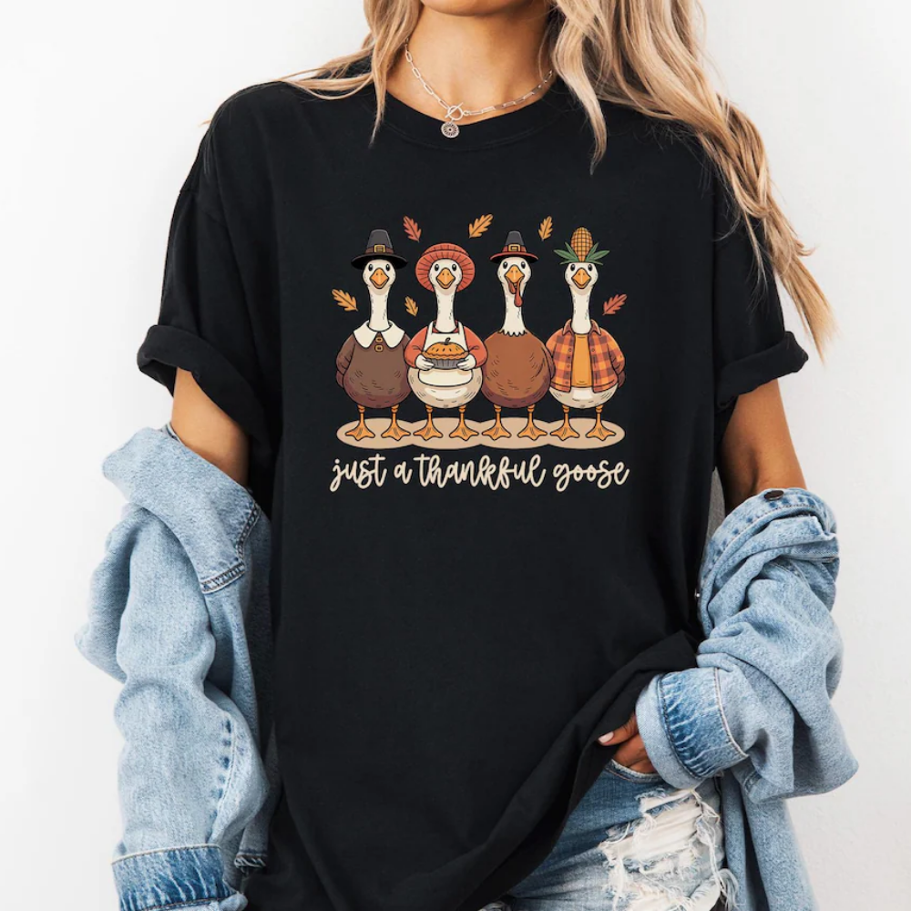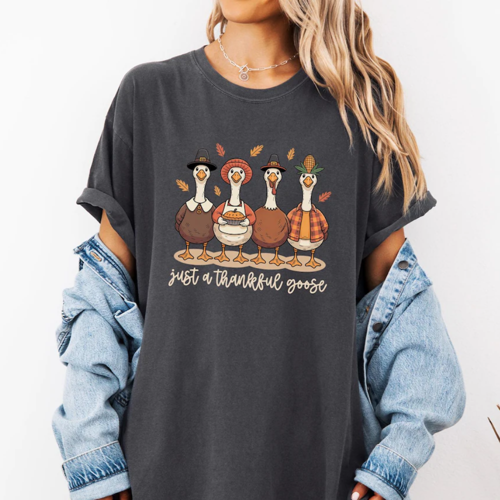 Thankful Goose Shirt, Fall Thanksgiving Tee, Funny Silly Goose T-Shirt, Autumn Top for Women & Men