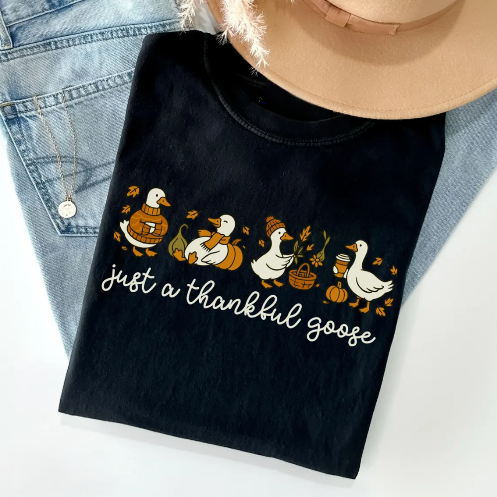 Thanksgiving Goose Shirt, Thankful Fall Cozy T-Shirt, Funny Cute Pumpkin Spice Top, Coffee Weather Leaves Tee, Gift For Mom