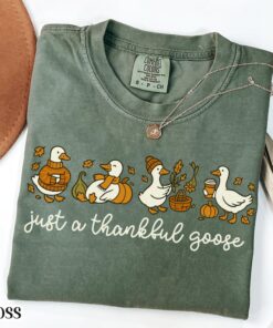 Thanksgiving Goose Shirt Thankful Fall Cozy Tshirt, Funny Cute Pumpkin Spice T-shirt, Coffee Weather Leaves Tee Gift For Mom