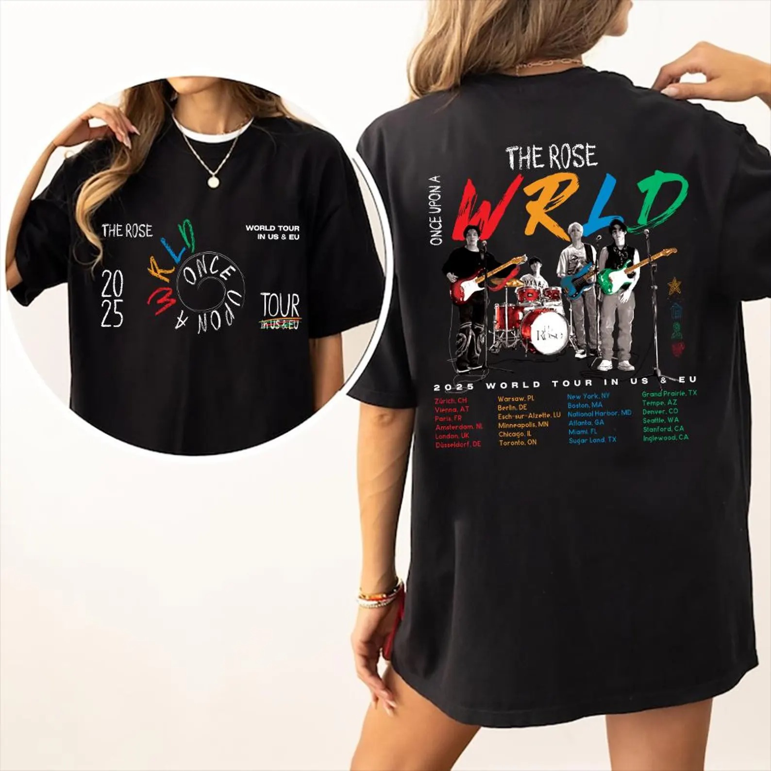 The Rose Once Upon AWRLD Tour T-Shirt, The Rose WRLD Road Map Shirt, Kpop The Rose 2025 World Tour Shirt, The Rose Woosung Dojoon Hajoon Tee