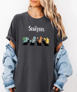 The Starters PKM T-Shirt, Kawaii Gaming Gift Top for Anime Lovers, Funny Retro Gamer Tee, Abbey Road PKM Anime Graphic Shirts