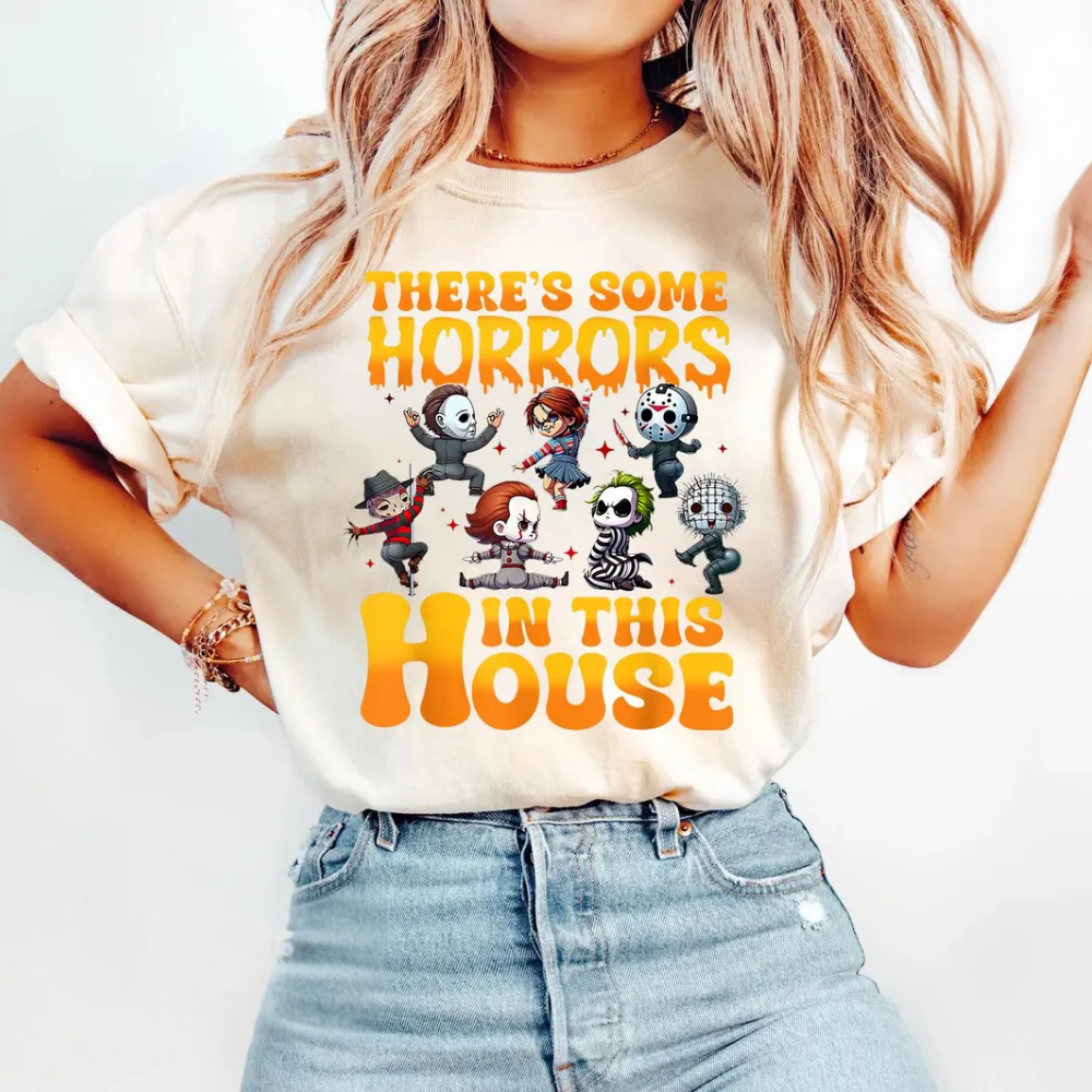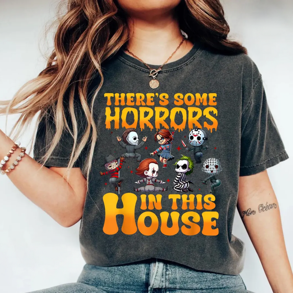 There’s Some Horrors In This House T-Shirt, Funny Horror Movie Character Halloween Shirt