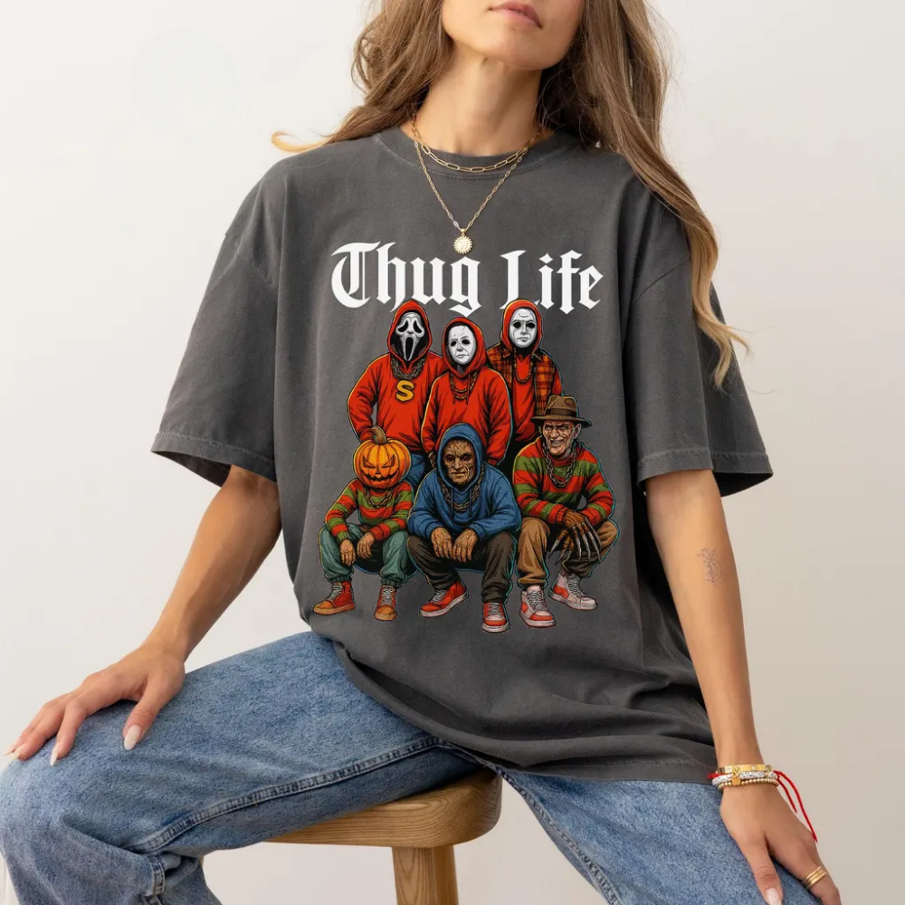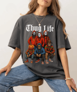 Thug Life Halloween Shirt, Freddy Krueger Jason Voorhees, Horror Movie Characters T-Shirt, Spooky Season Scream Horror Tee, Halloween Season Top