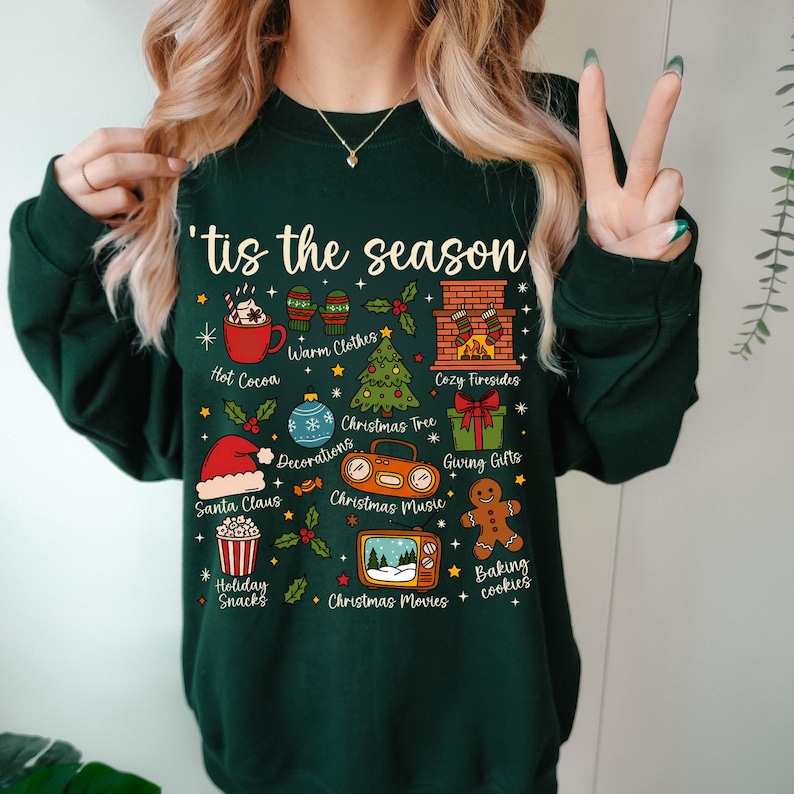 Tis the Season Christmas Sweatshirt, Santa Sweatshirt, Retro Holiday Shirt, Christmas Tree Shirt, Christmas Xmas Shirt, Christmas Tree Shirt