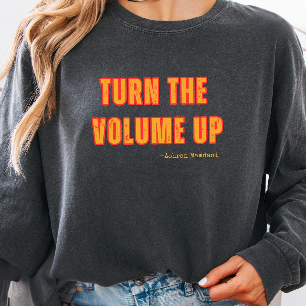Turn the Volume Up Long Sleeve, Mayor Mamdani Shirt, Zohran Mamdani Tee, NYC 2026, Democracy T-Shirt, Protest, Liberal Top