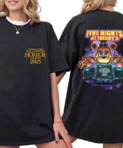 Two-sided Universal Halloween Horror Nights 2025 Shirt, Five Nights At Freddy Top, Retro Horror Character T-Shirt, Horror Movie Tee, Spooky
