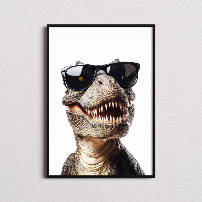 Tyrannosaurus Rex In Sunglasses Print, Tyrannosaurus Rex Poster, T-Rex Print, T-Rex Poster, Dinosaur Poster, Kids Bedroom Print