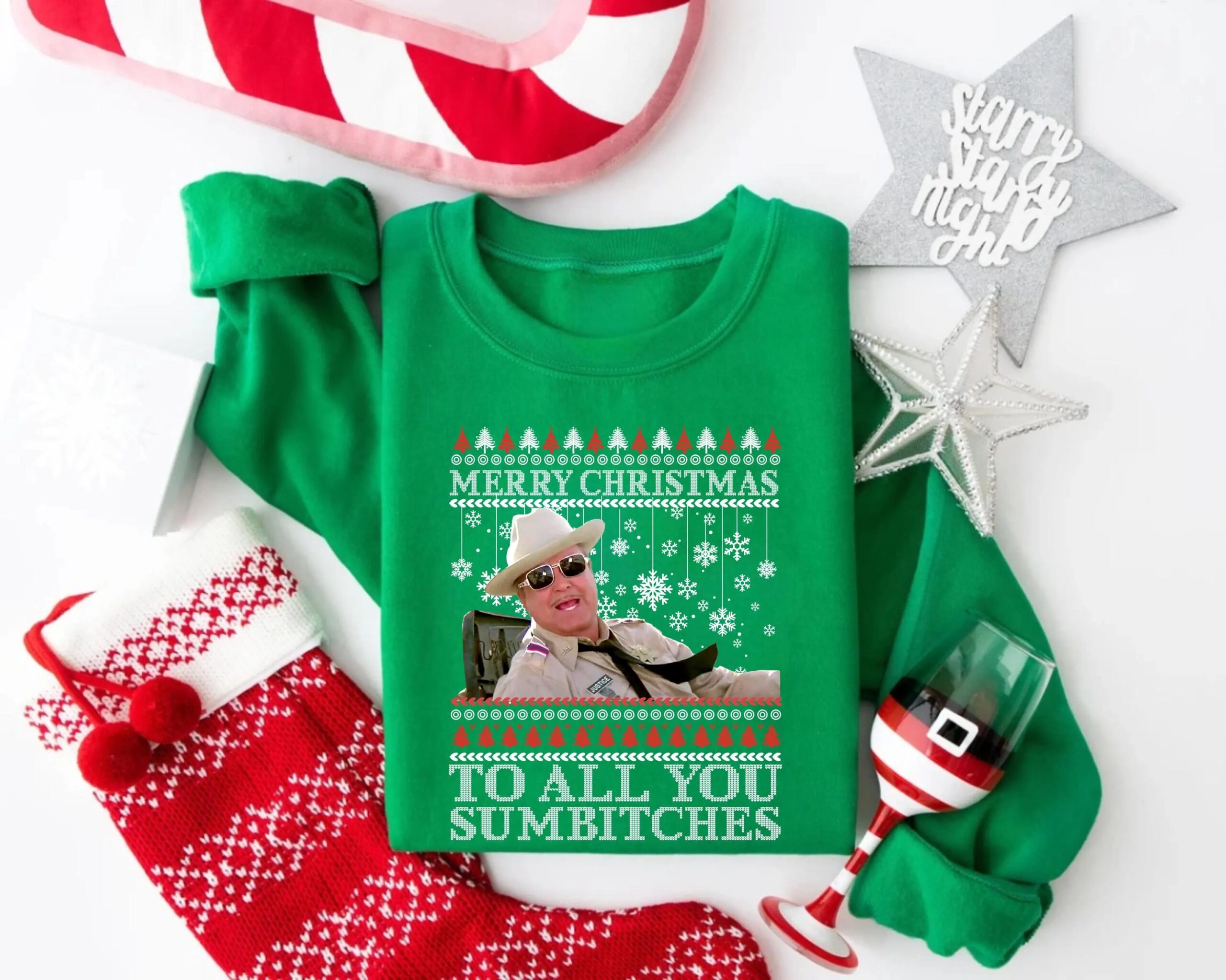 Ugly Smokey and the Bandit Christmas Crewneck, Merry Christmas to All You Sumbitches Shirt