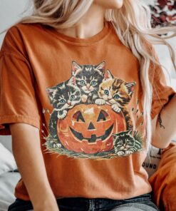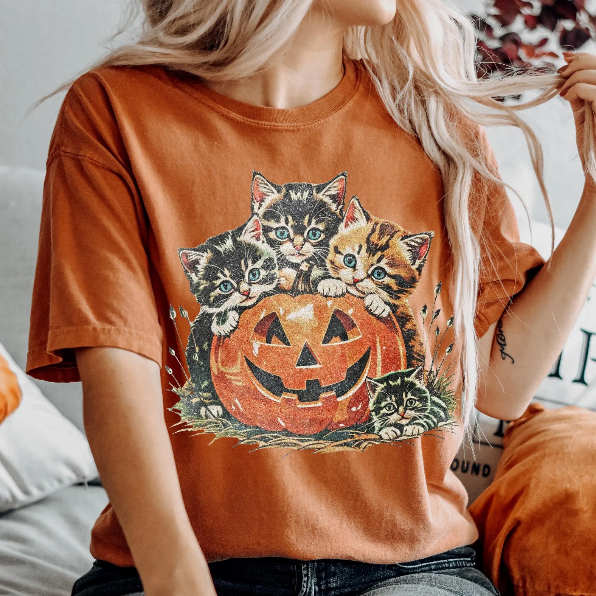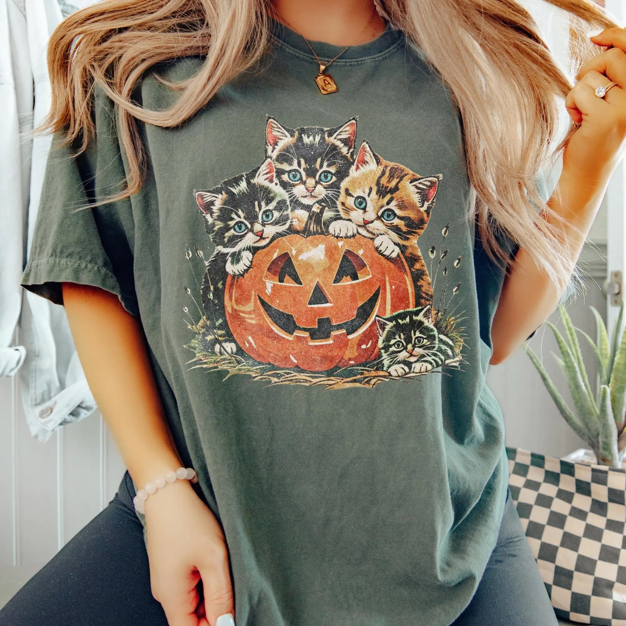 Vintage 90s Cat Halloween T-Shirt, Retro Halloween Shirt, Spooky Season Tee
