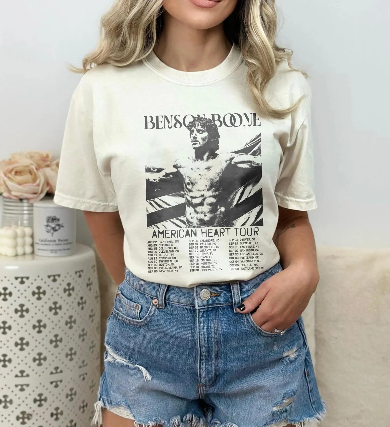 Vintage Benson Boone Shirt, Benson Boone Merch, Benson Boone Concert Shirt, America Heart Tour Shirt, Benson Boone Tour Shirt
